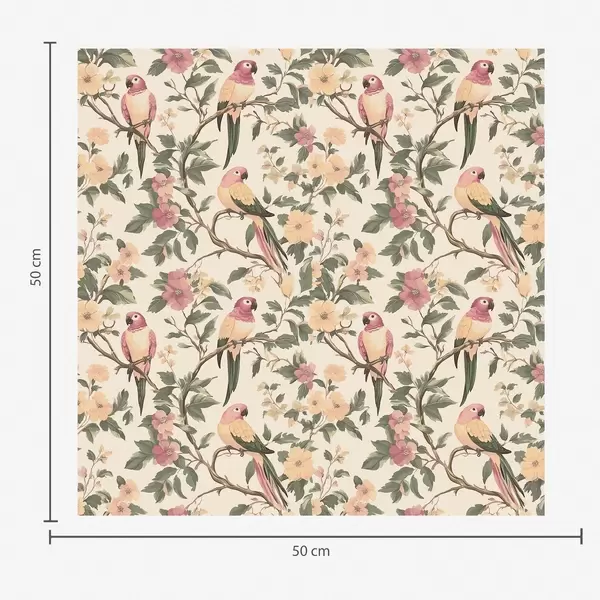 Papel de parede Pássaros tropicais em galhos floridos em tons pastéis Nr. a00199