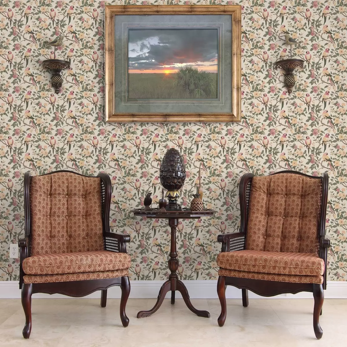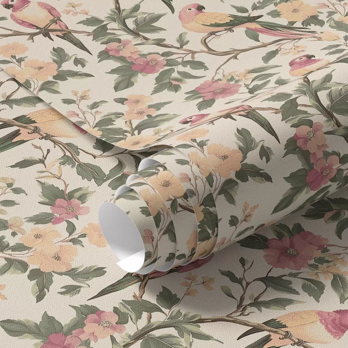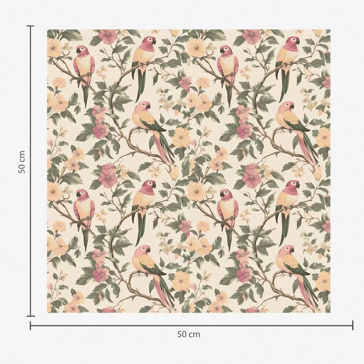 Papel de parede Pássaros tropicais em galhos floridos em tons pastéis Nr. a00199