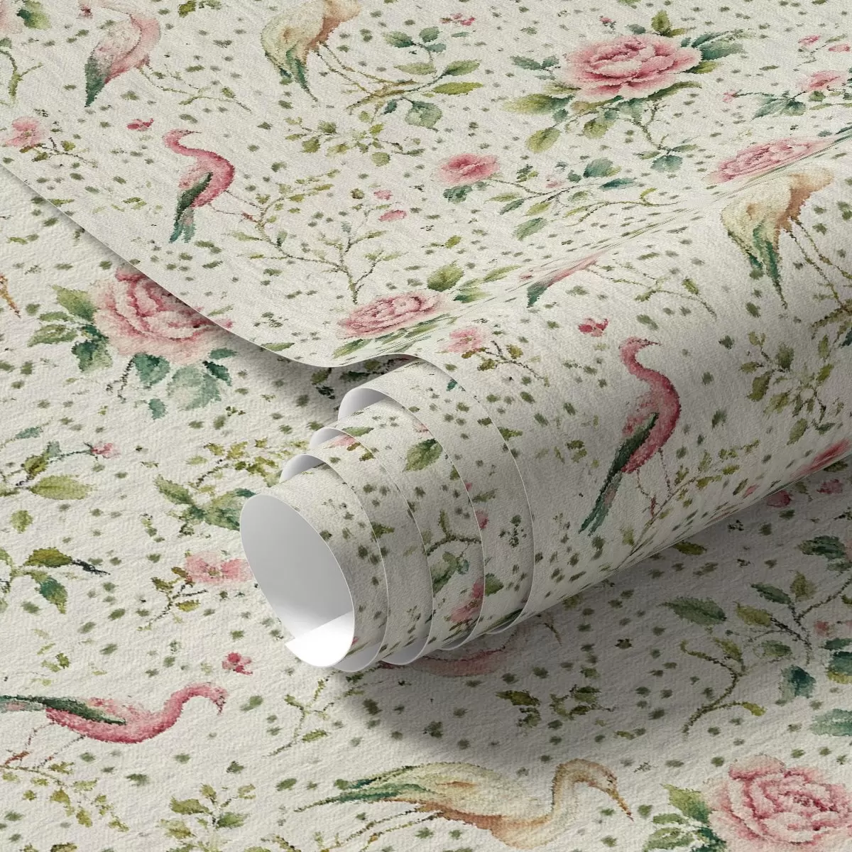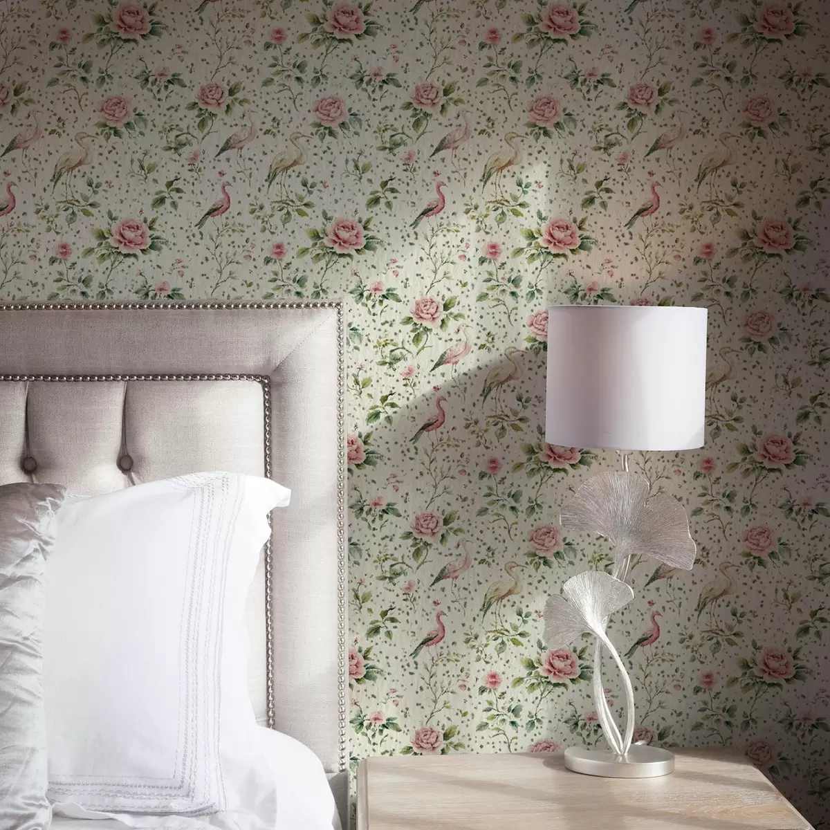Papel de parede Rosas rosa pastel e pássaros em estilo shabby chic Nr. a00201