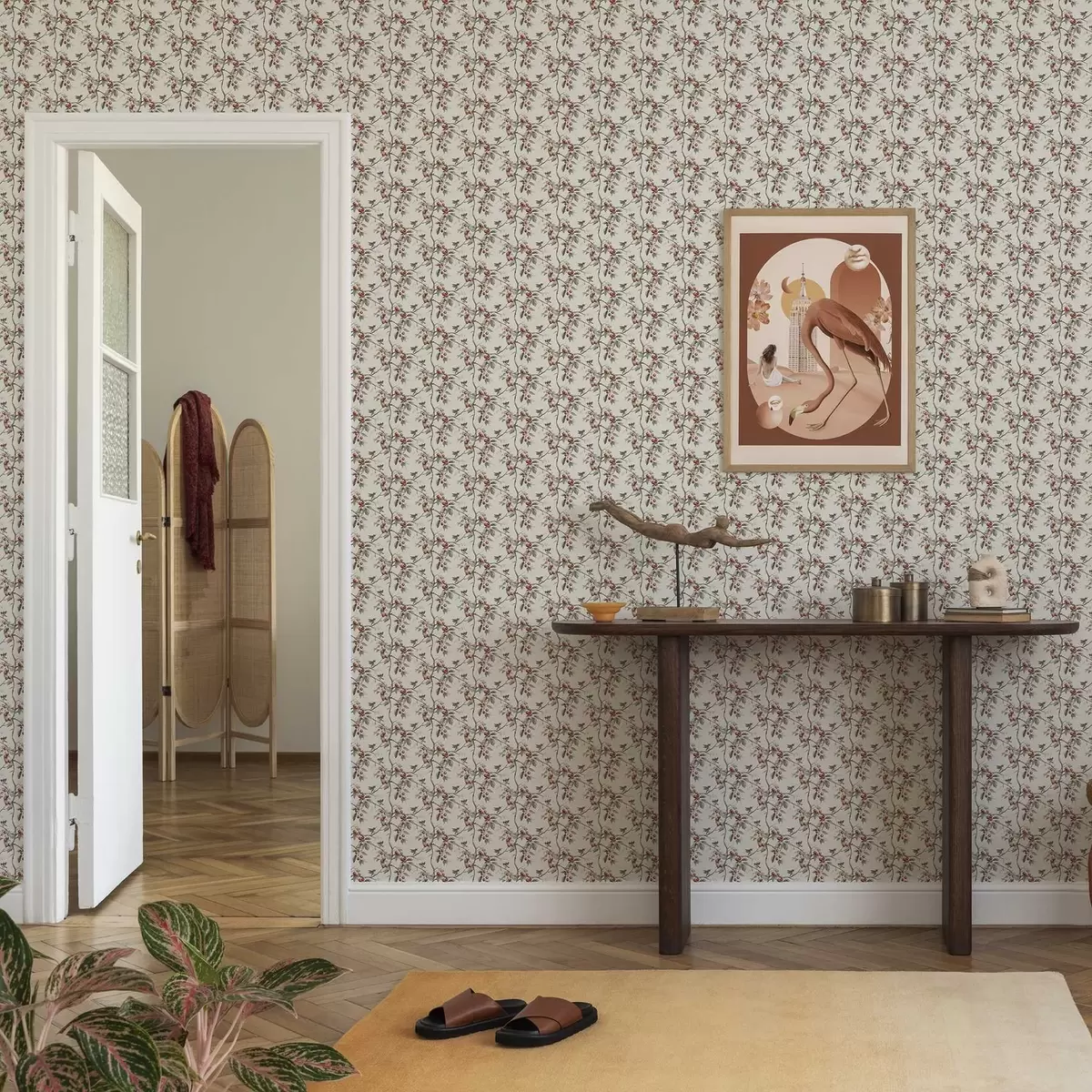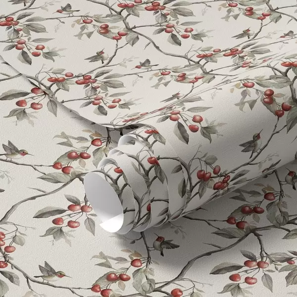 Papel de parede Pássaros entre ramos de cerejeira com bagas vermelhas Nr. a00206