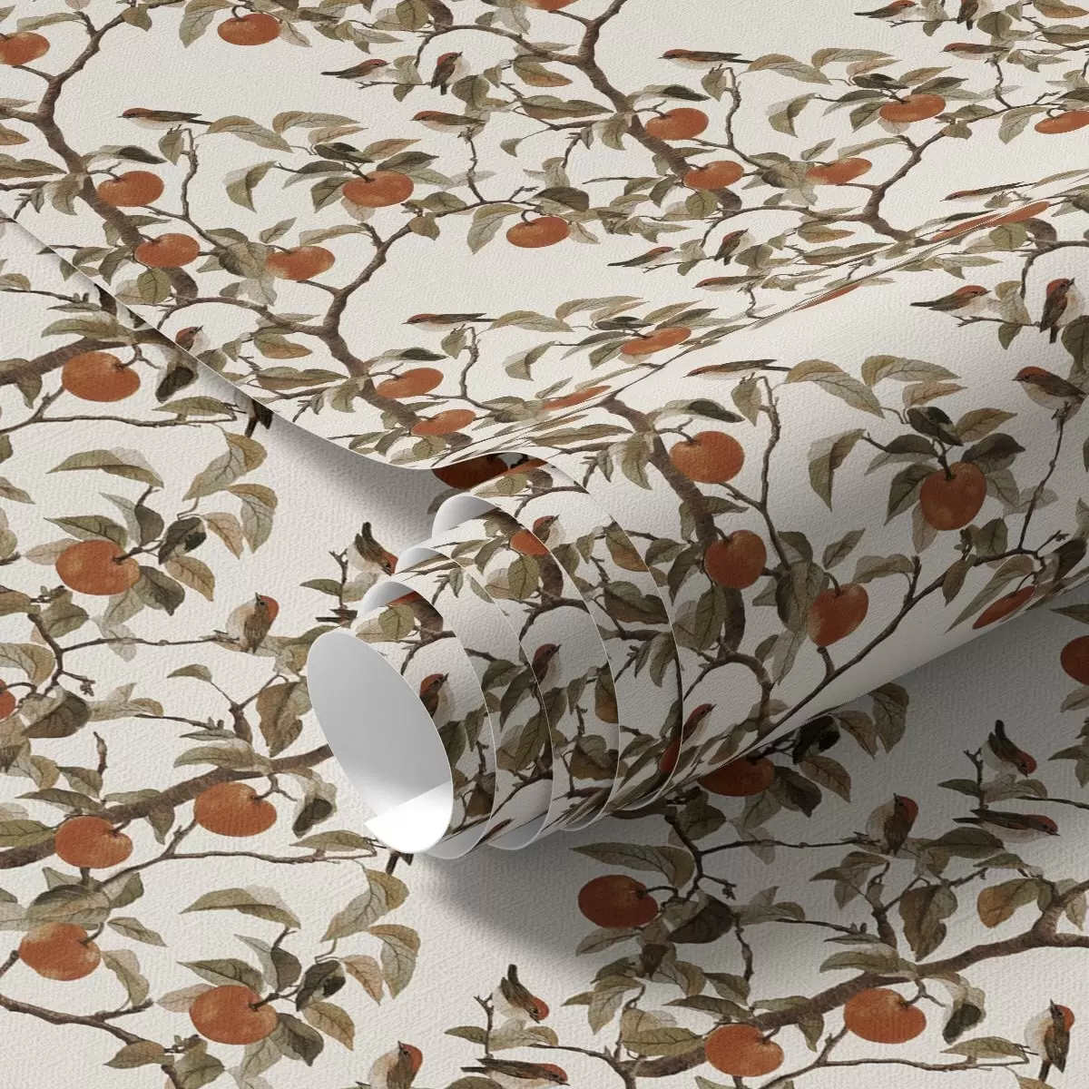 Papel de parede Pássaros e laranjas em galhos, botânica vintage Nr. a00208