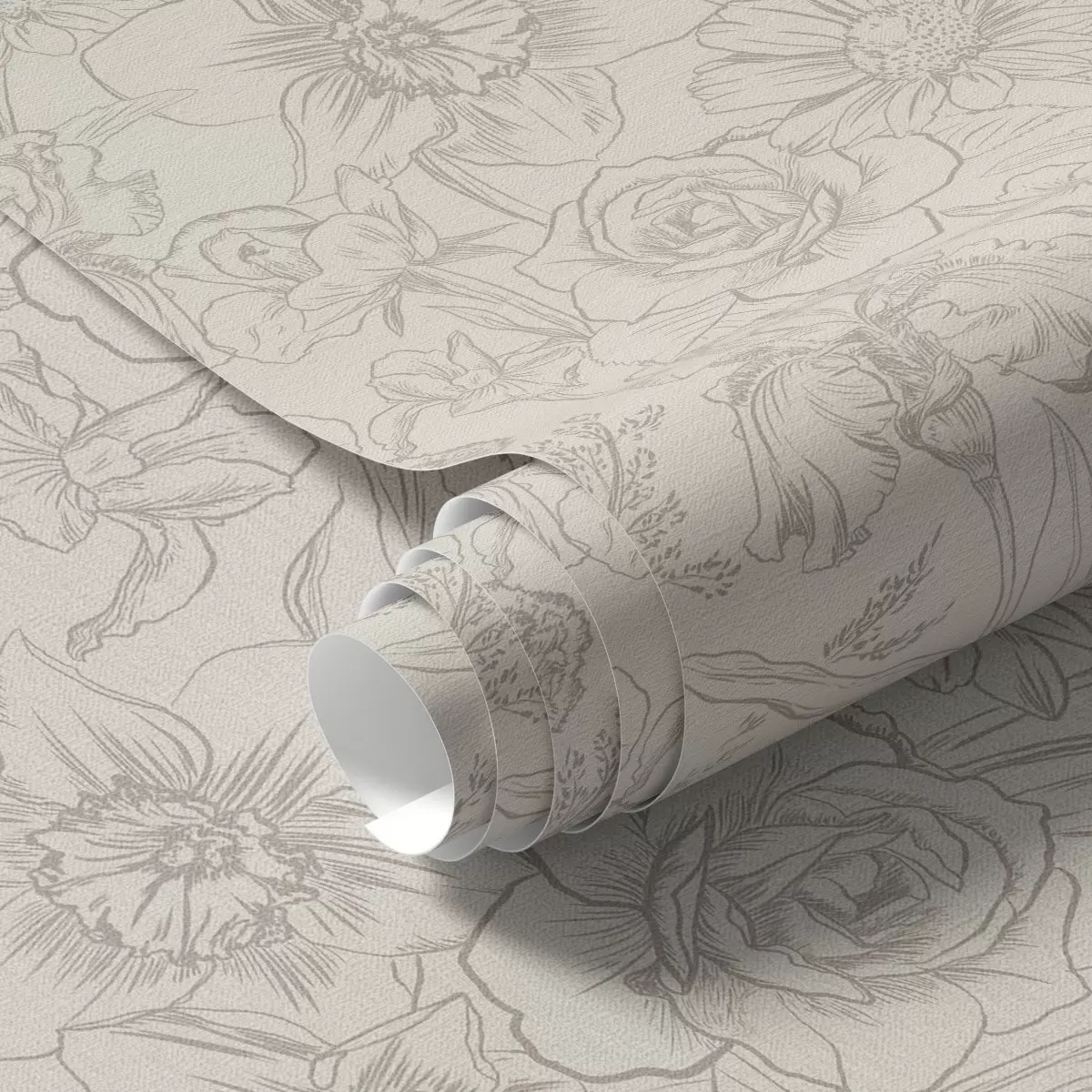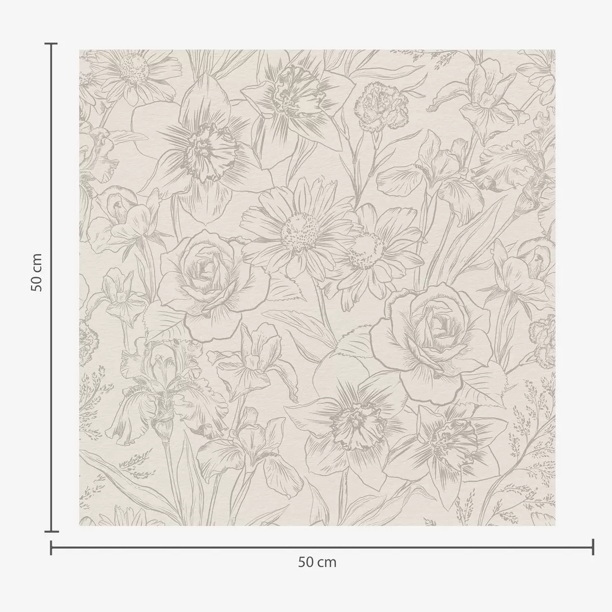 Papel de parede Flores de contorno em um fundo creme, padrão floral delicado Nr. a00218