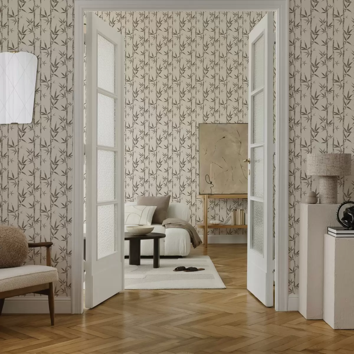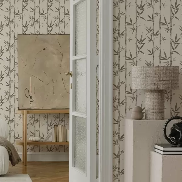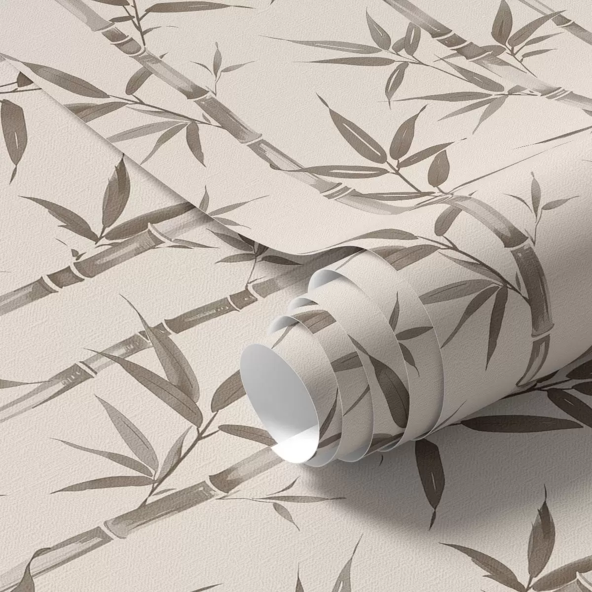 Papel de parede Padrão de bambu bege com folhas em estilo japonês Nr. a00236
