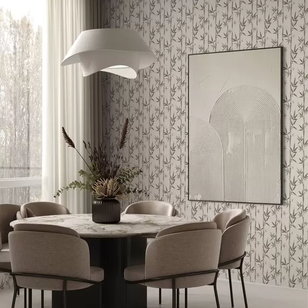 Papel de parede Padrão de bambu bege com folhas em estilo japonês Nr. a00236