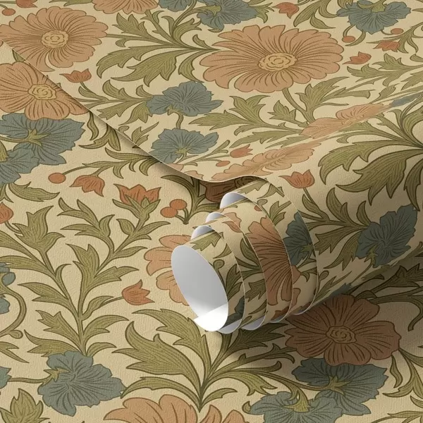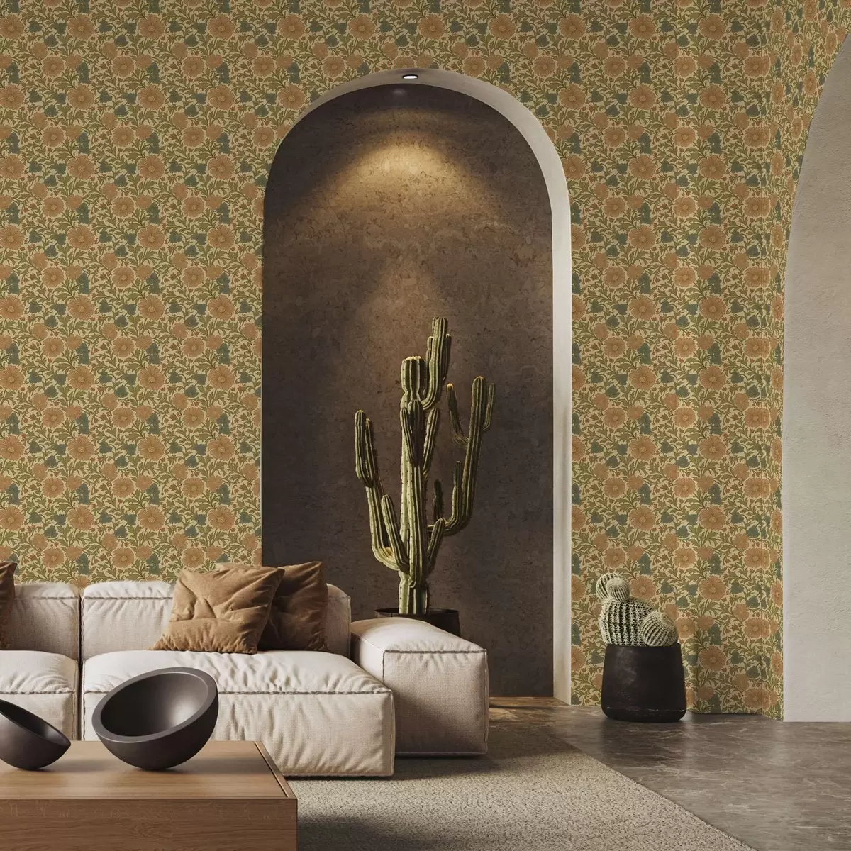 Papel de parede Padrão retrô com flores laranja e azuis Nr. a00245