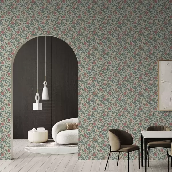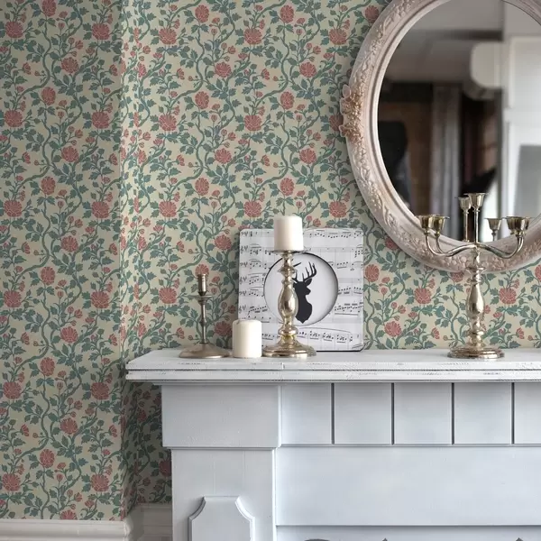 Papel de parede Padrão retrô com flores em vermelho e verde Nr. a00250