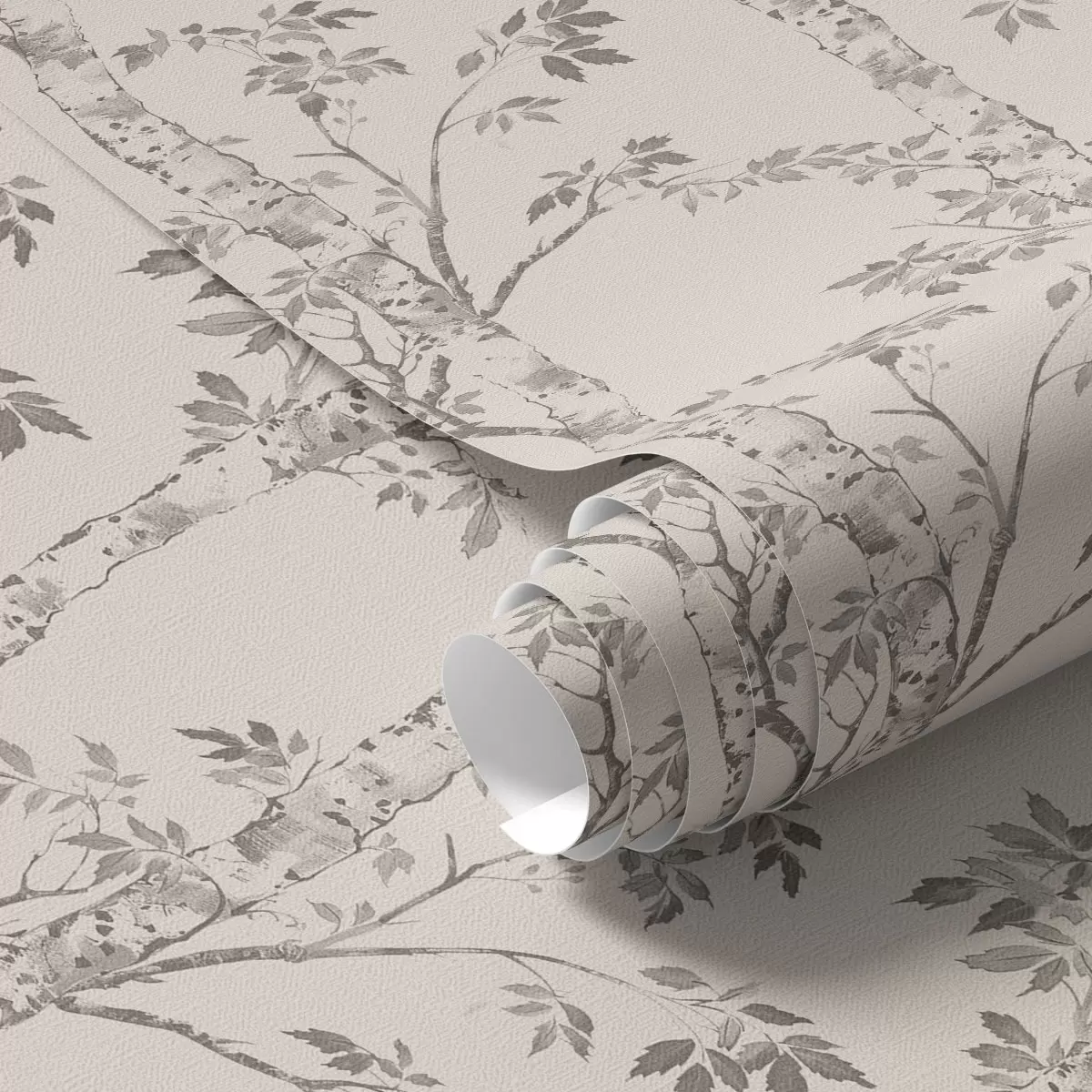 Papel de parede Ramos de bétula com folhas em um fundo claro Nr. a00257