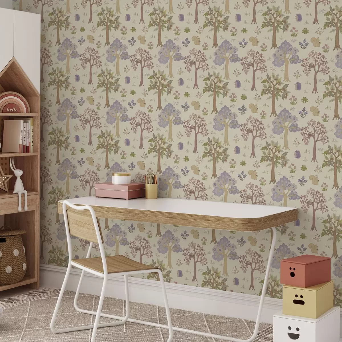 Papel de parede Floresta de fadas com animais em estilo infantil Nr. a00264