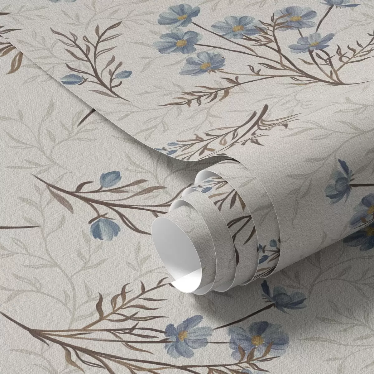 Papel de parede Pequenas flores azuis com ramos marrons Nr. a00265