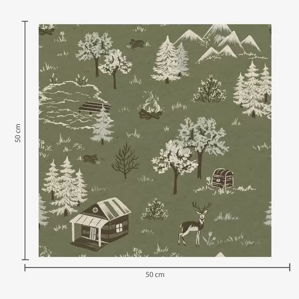 Papel de parede Floresta pintada com um lago, uma cabana e animais Nr. a00267