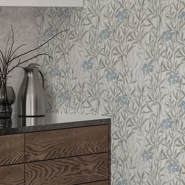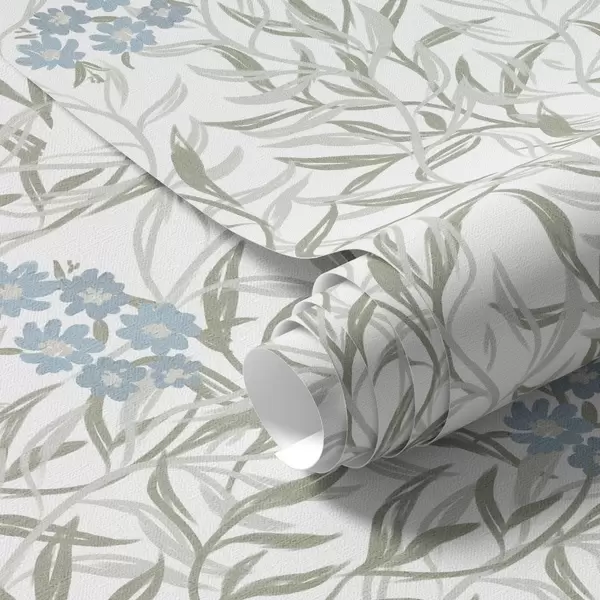 Papel de parede Estampa botânica clara com flores azuis Nr. a00268