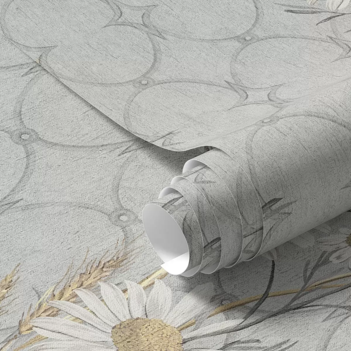 Papel de parede Margaridas em um fundo cinza com padrão geométrico Nr. a00269