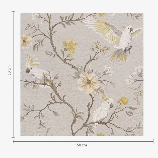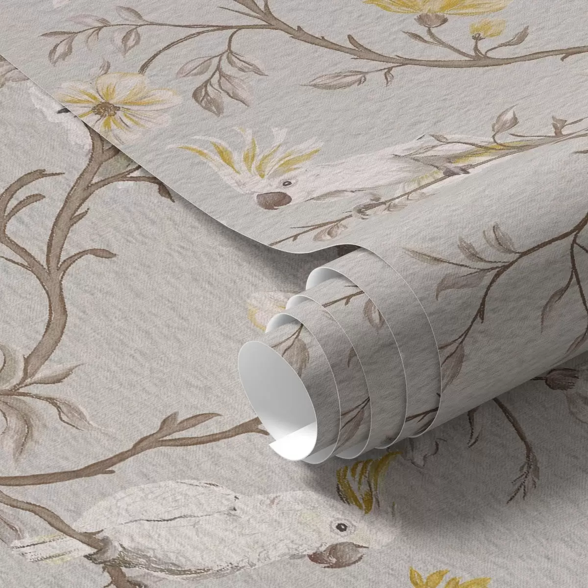 Papel de parede Papagaios e flores amarelas em um fundo claro a00270