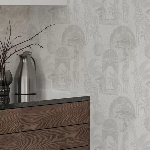 Papel de parede Ilustração gráfica com girafa, zebra e palmeiras Nr. a00276v1