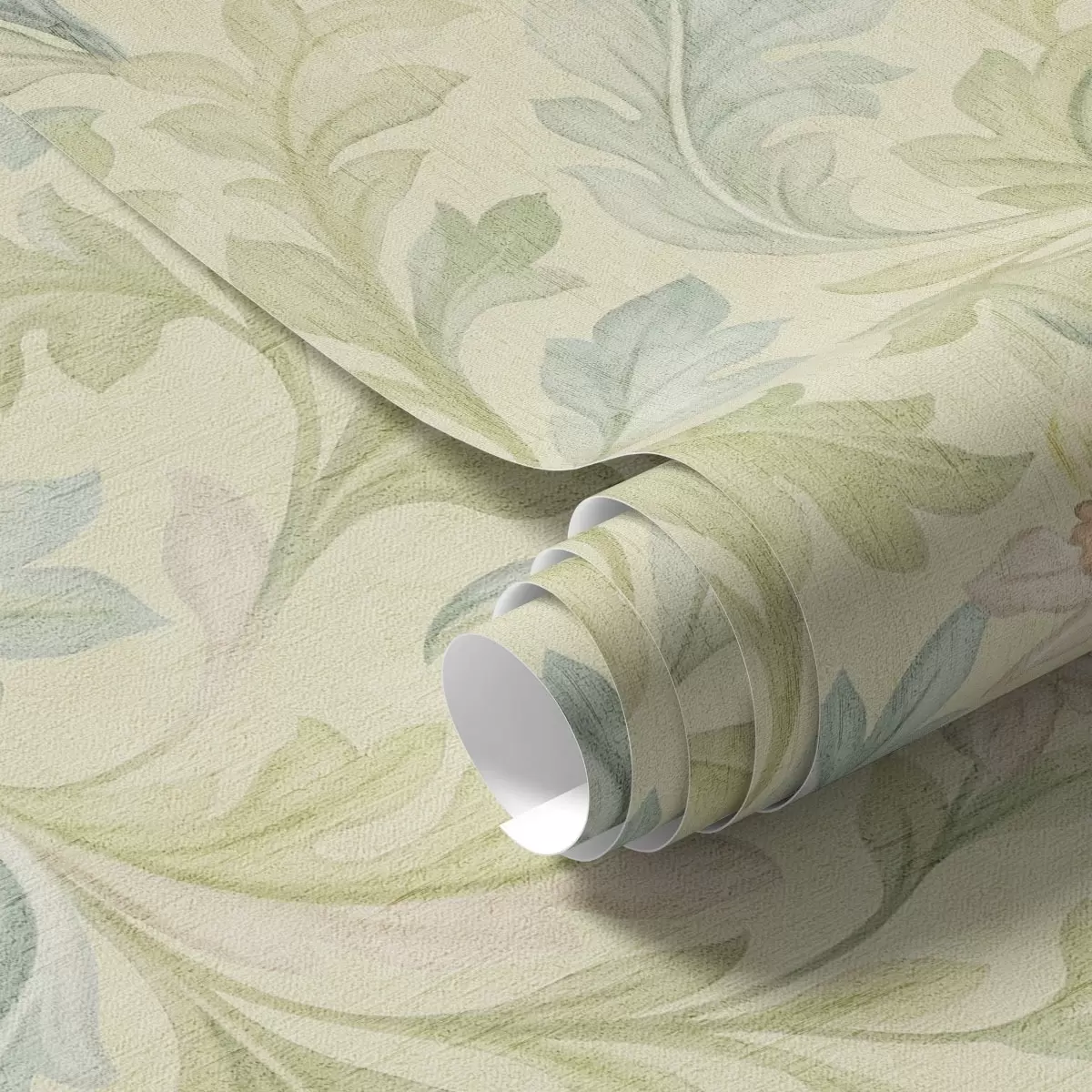 Papel de parede Folhas vintage em um fundo amarelado, cores suaves Nr. a00277v1
