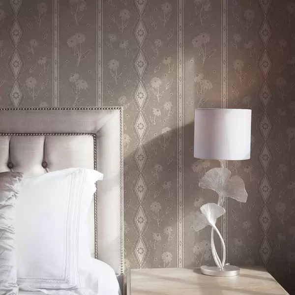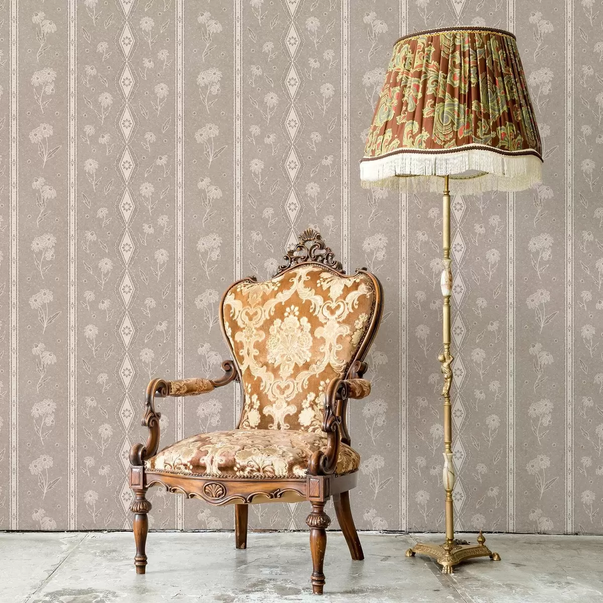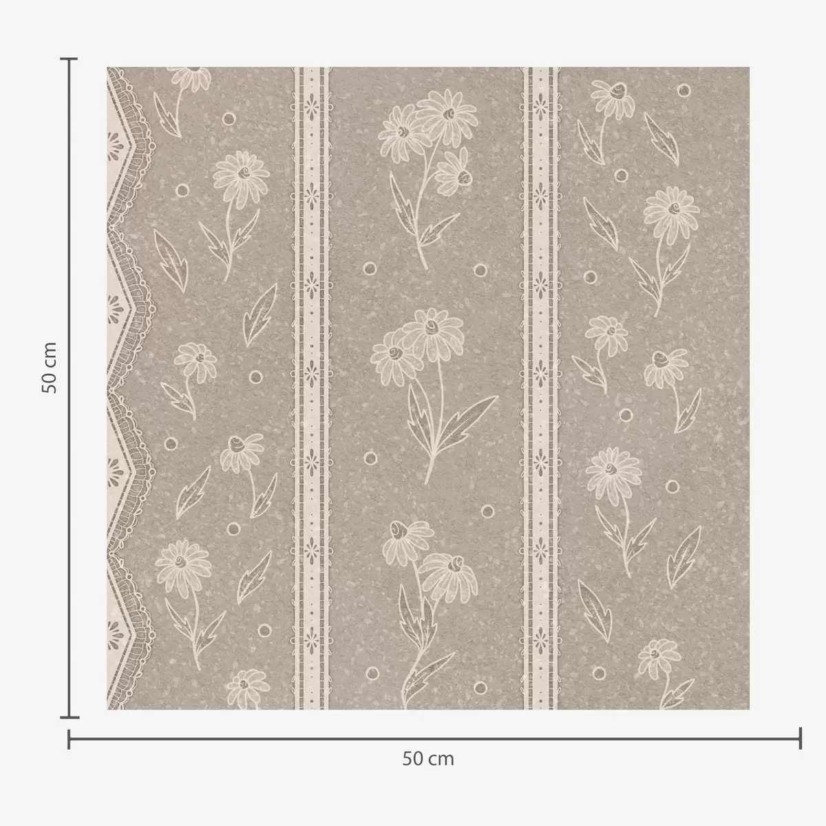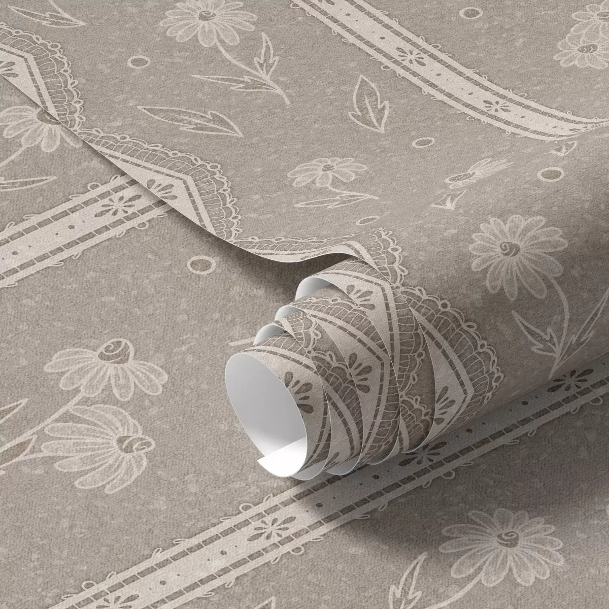 Papel de parede Listras com margaridas e rendas em um fundo cinza-bege Nr. a00295