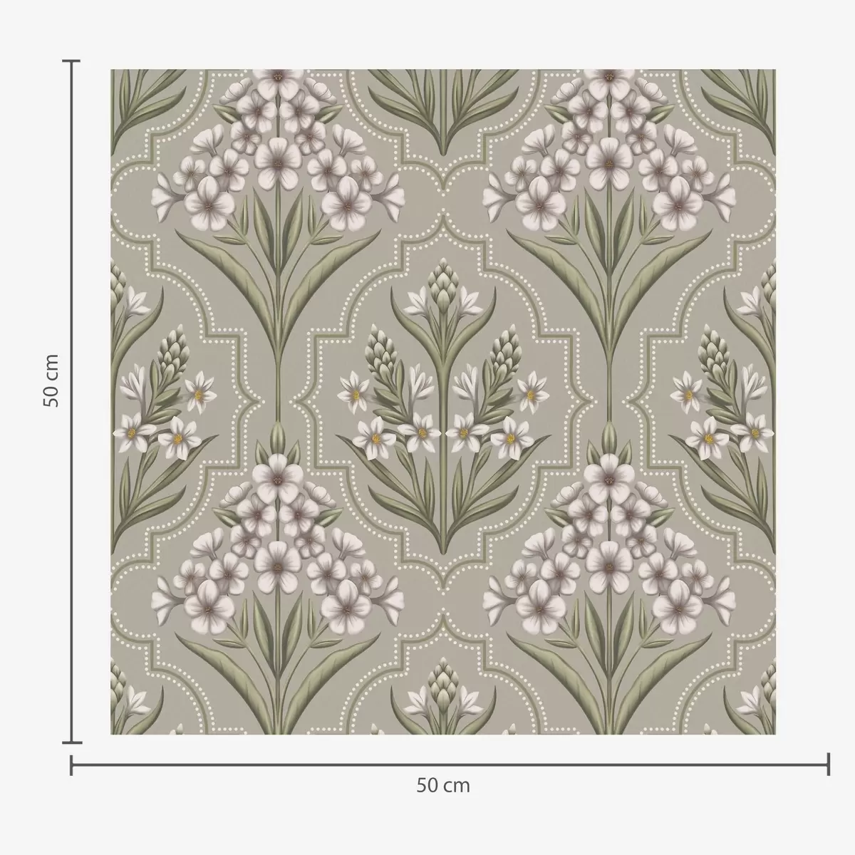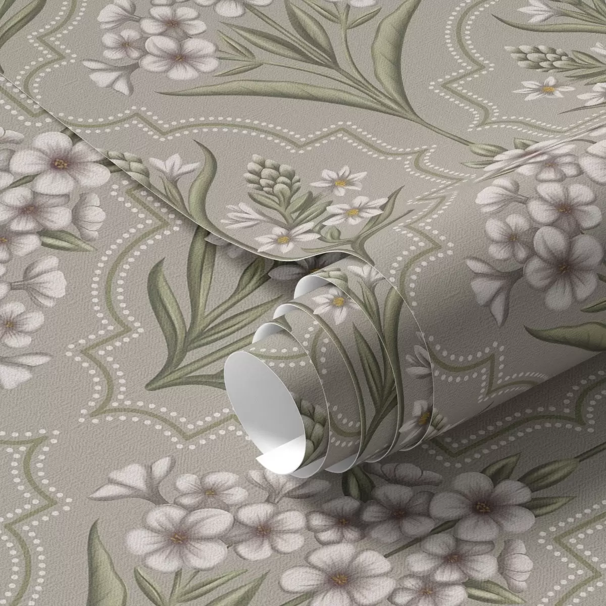 Papel de parede Padrão simétrico com flores brancas em um fundo cinza Nr. a00302