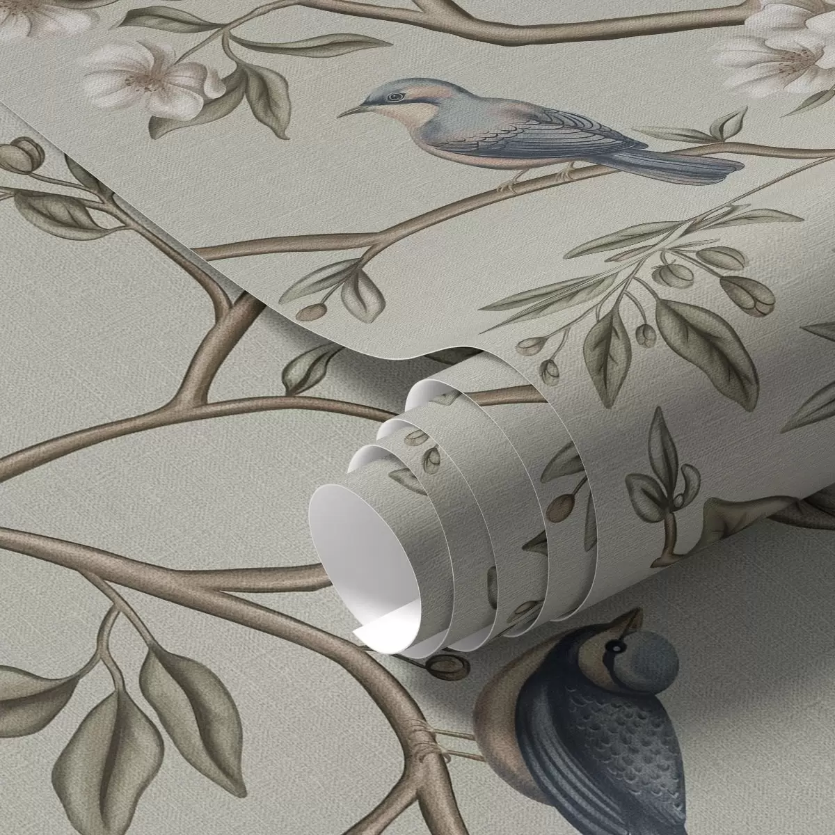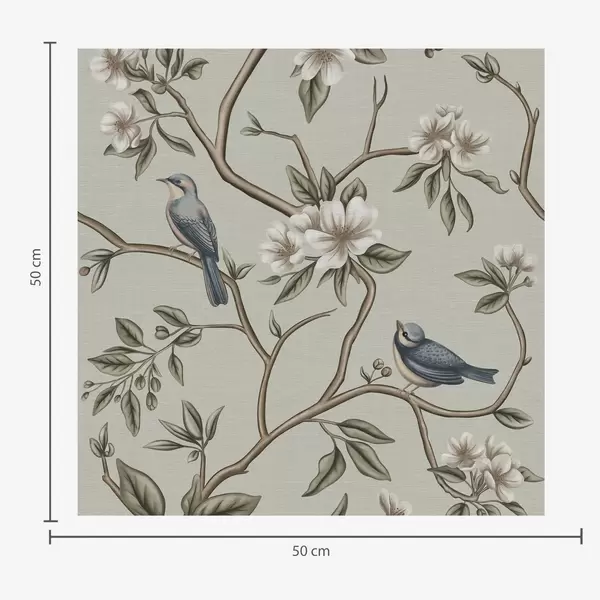 Papel de parede Galhos com pássaros e flores brancas em um fundo delicado Nr. a00303