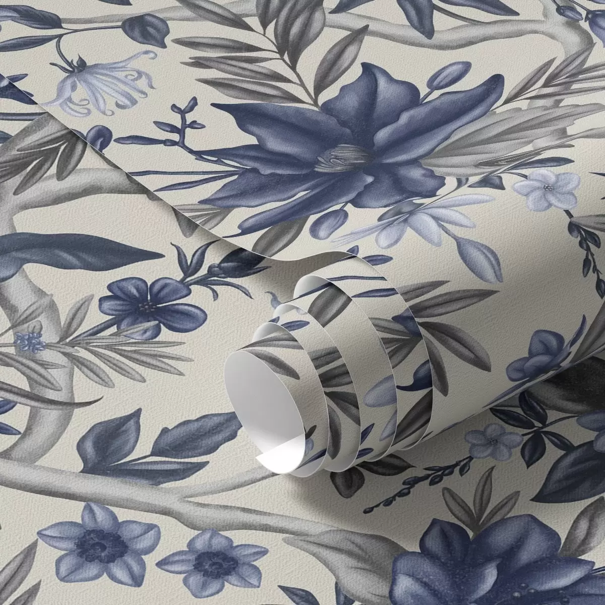 Papel de parede Flores azuis e cinzas em um fundo claro Nr. a00304