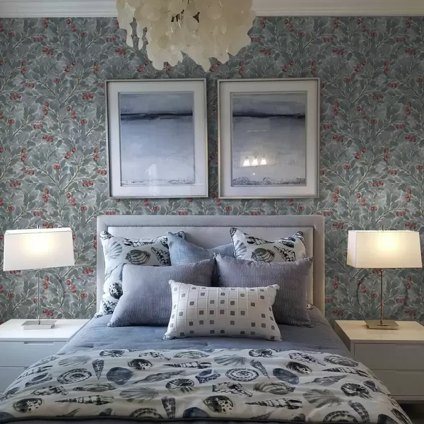 Papel de parede Folhas azuis com ramos de bagas vermelhas Nr. a00309