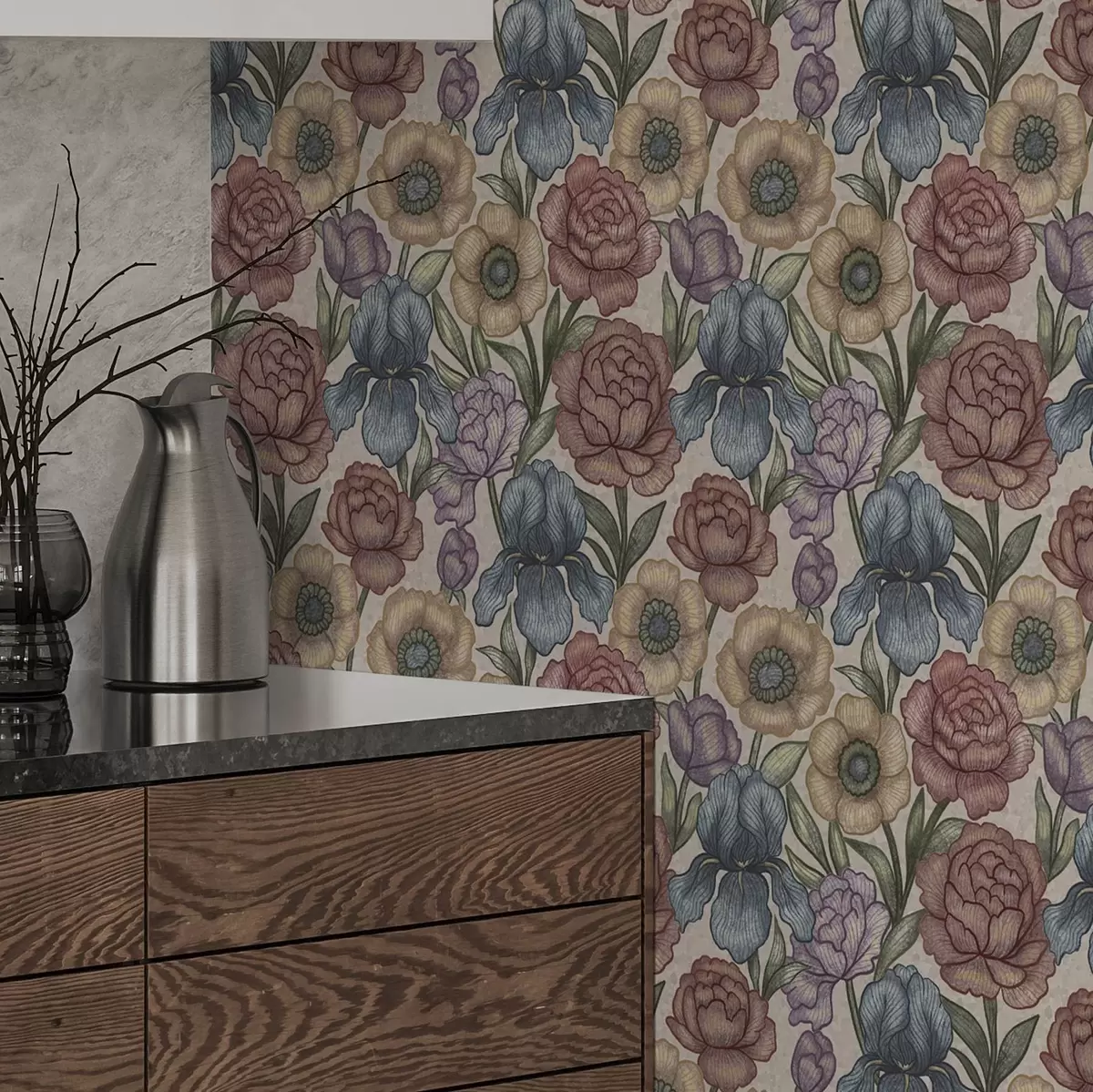 Papel de parede Grandes ilustrações florais com íris e peônias Nr. a00325