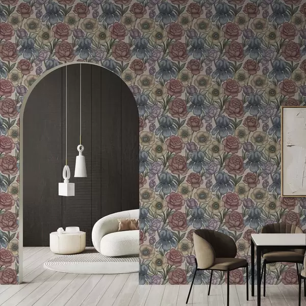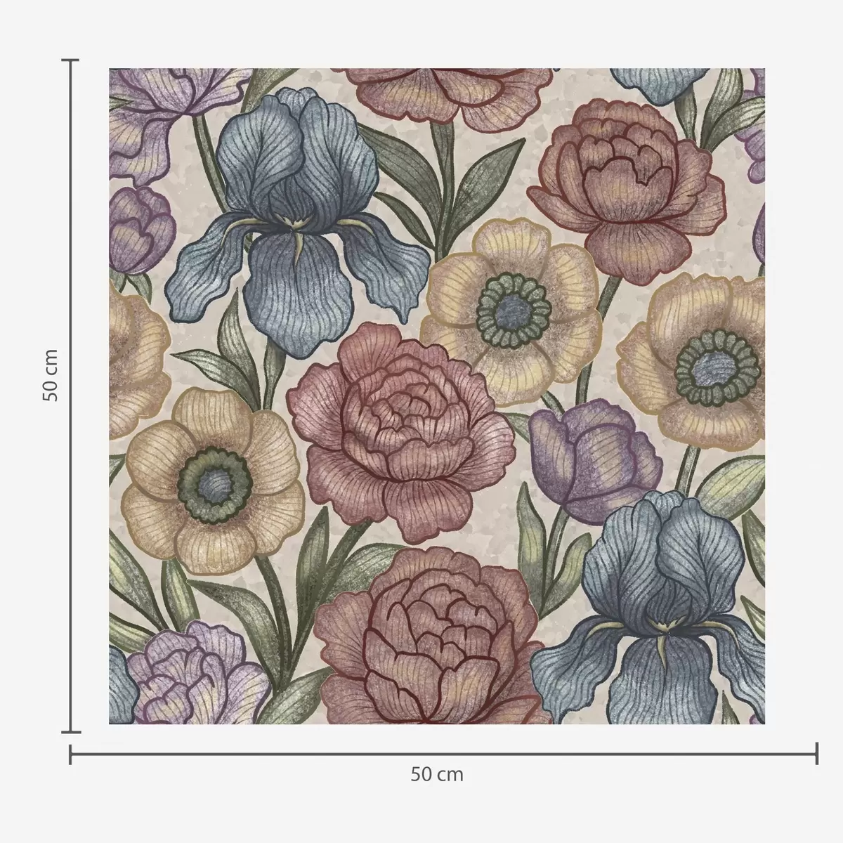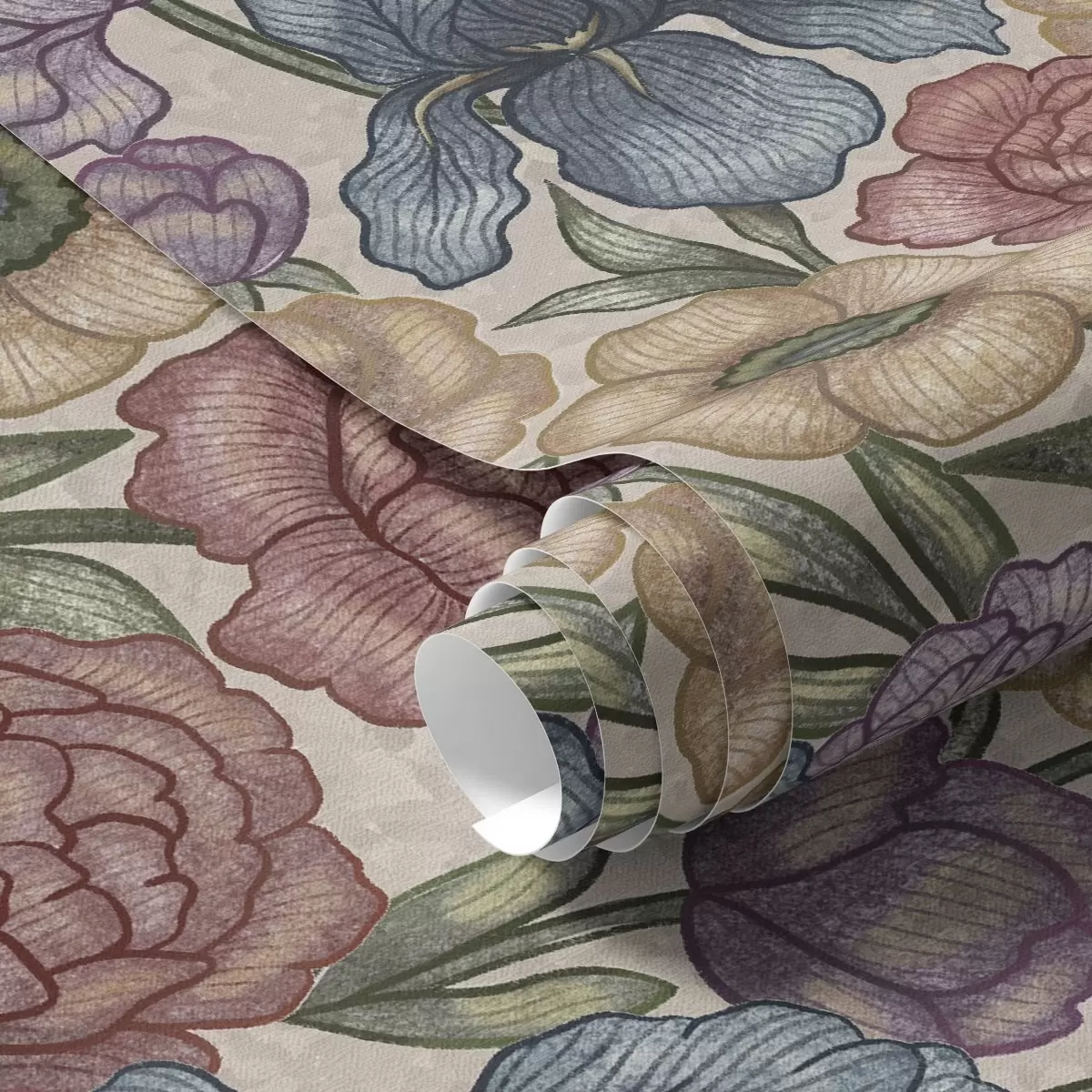 Papel de parede Grandes ilustrações florais com íris e peônias Nr. a00325