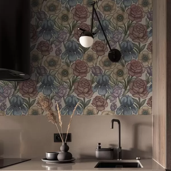 Papel de parede Grandes ilustrações florais com íris e peônias Nr. a00325