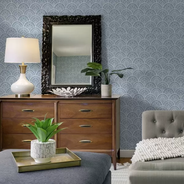 Papel de parede Ornamento azul com arcos e padrões Nr. a00332