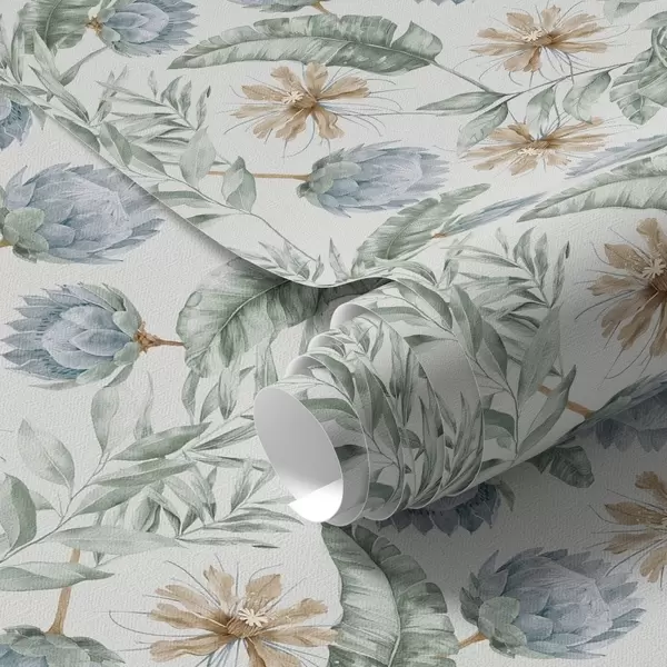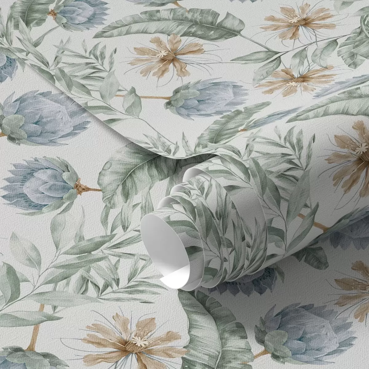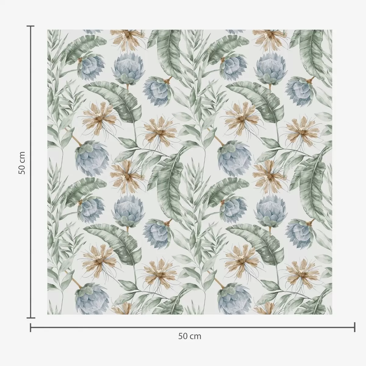Papel de parede Padrão botânico com alcachofras e folhas tropicais Nr. a00340