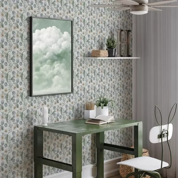 Papel de parede Padrão botânico com alcachofras e folhas tropicais Nr. a00340