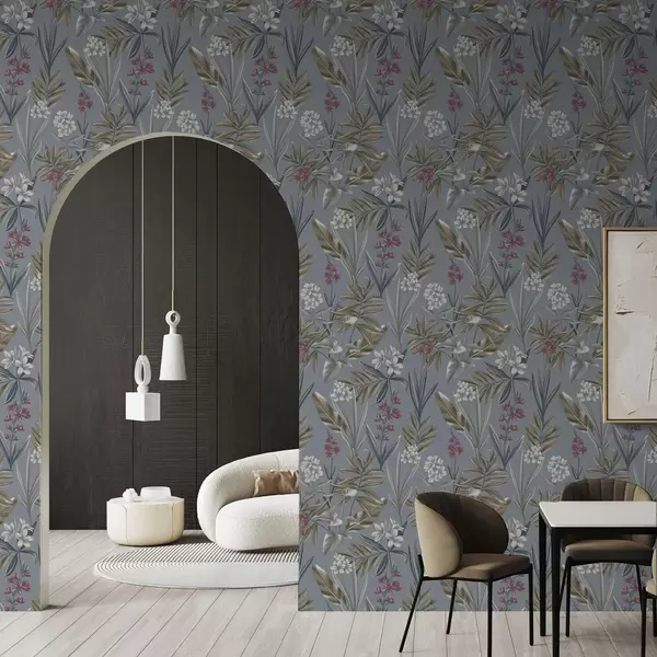 Papel de parede Ramos florais em um fundo cinza-azulado Nr. a00350