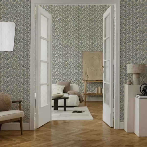 Papel de parede Padrão simétrico com elementos em azul e bege Nr. a00360