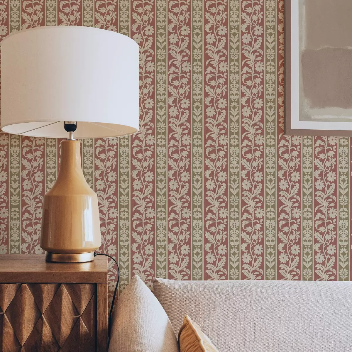 Papel de parede Listras verticais retrô com estampa floral Nr. a00362