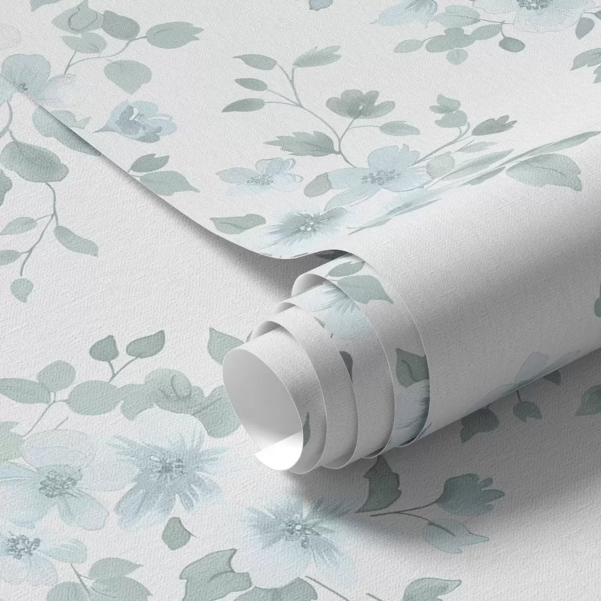 Papel de parede Flores azuis claras em um fundo branco, estilo aquarela Nr. a00364