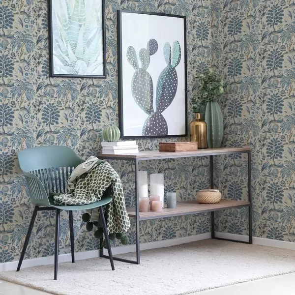 Papel de parede Estilo Toile de Jouy com pássaros azuis e árvores tropicais Nr. a00382