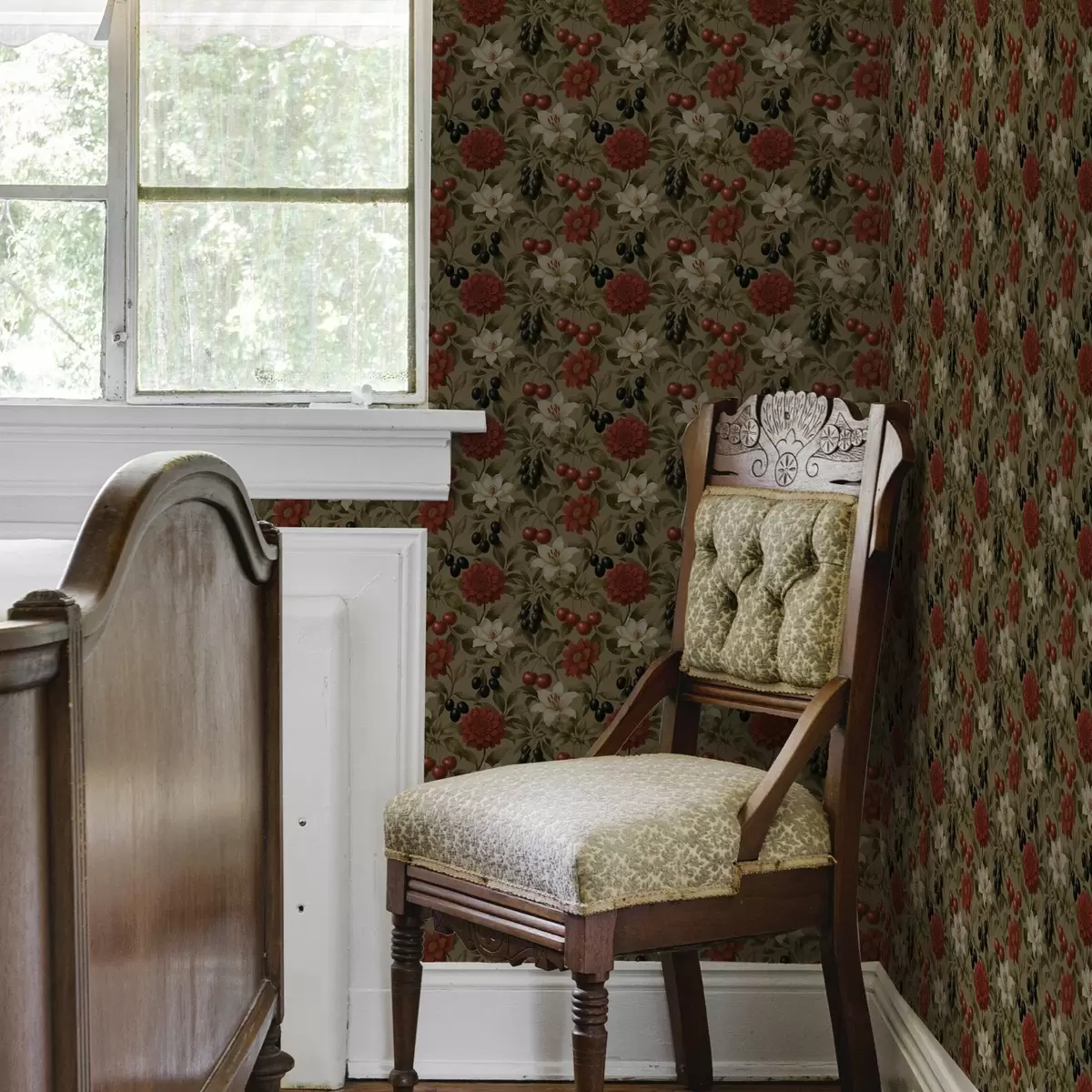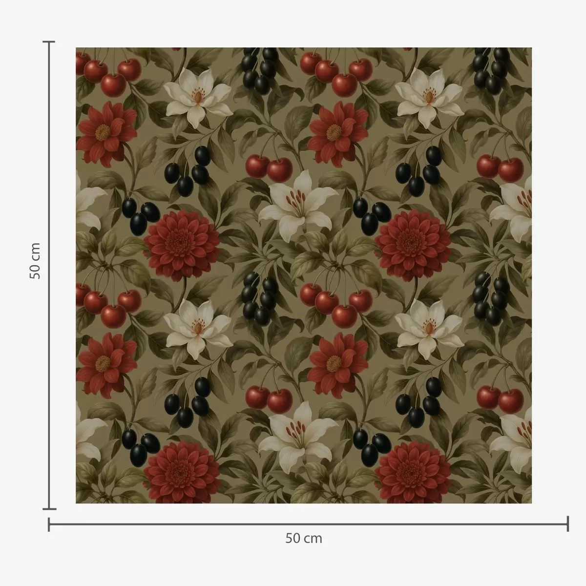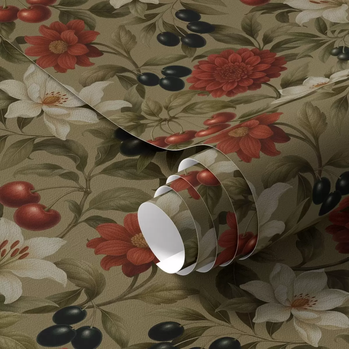 Papel de parede Cerejas, flores e azeitonas pretas Nr. a00384