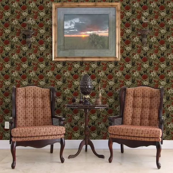 Papel de parede Cerejas, flores e azeitonas pretas Nr. a00384
