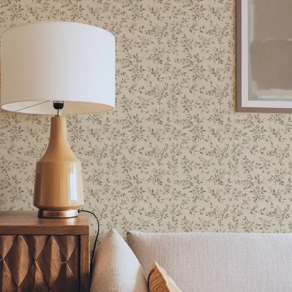 Papel de parede Delicados ramos de flores em tons pastéis em um fundo bege Nr. a00390
