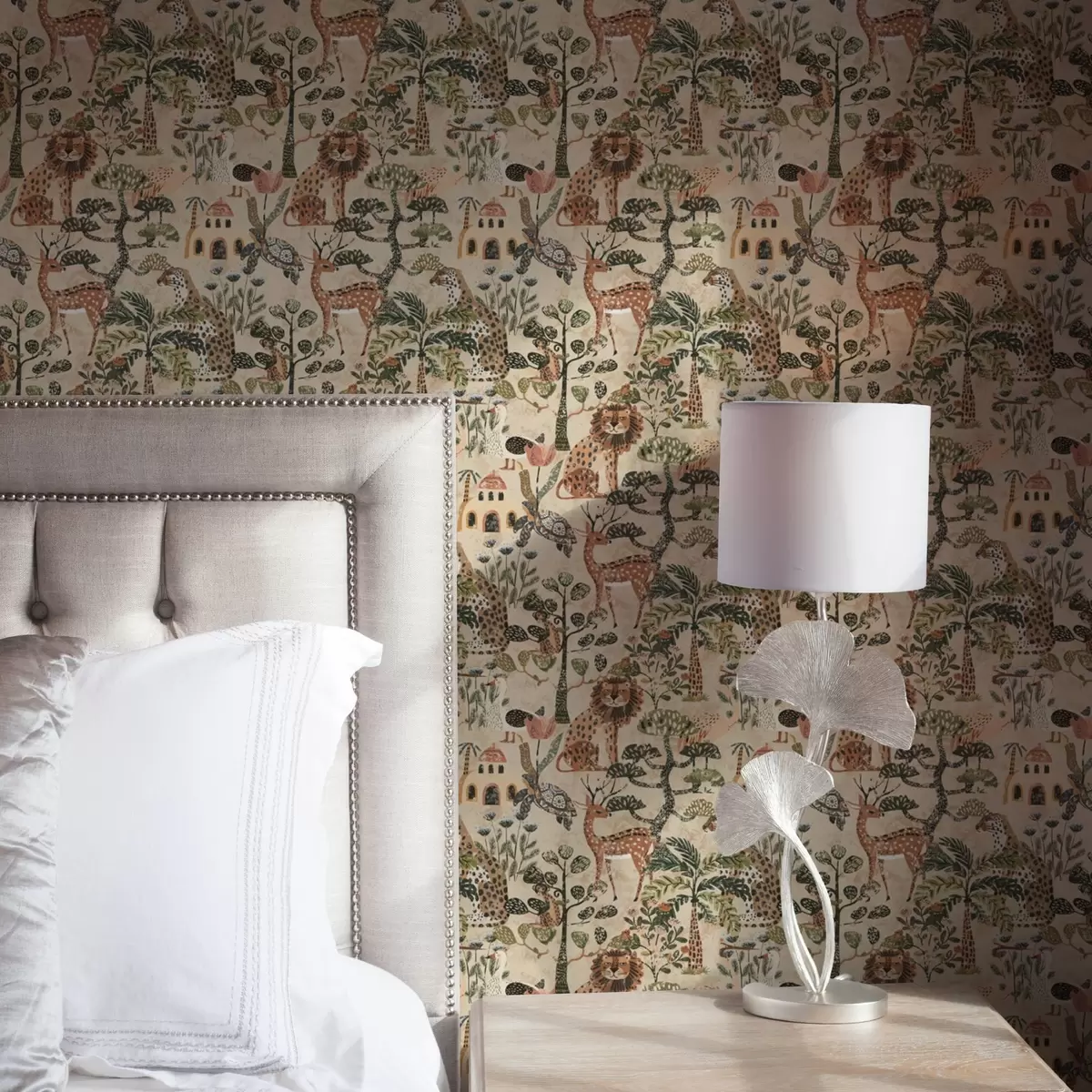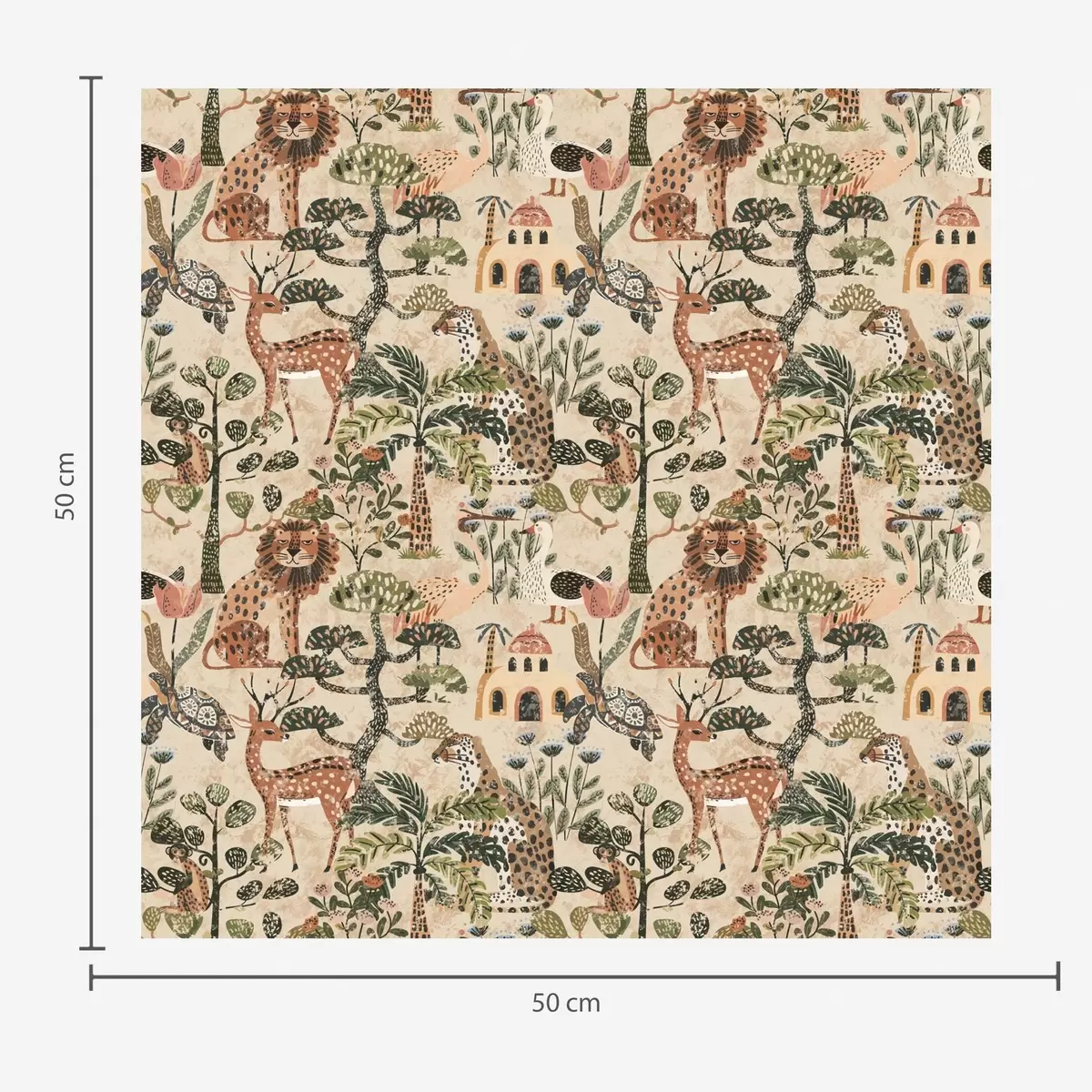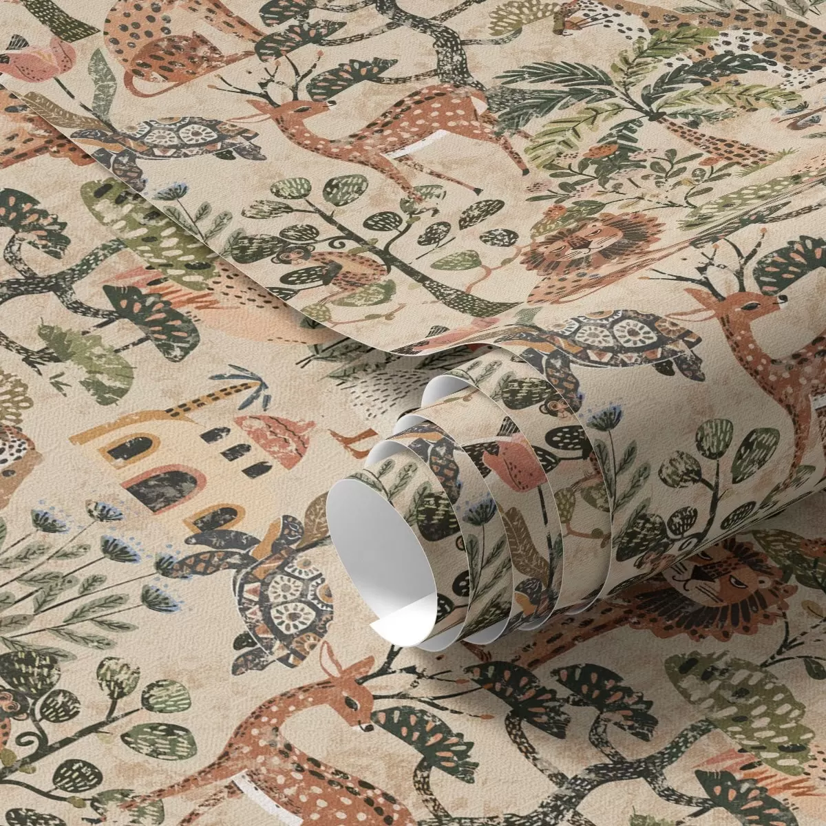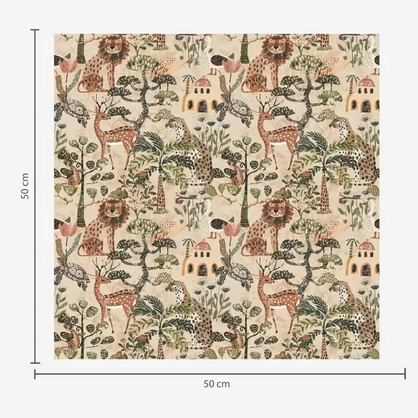 Papel de parede Animais de safári e folhas de savana em tons quentes de terra Nr. a00392