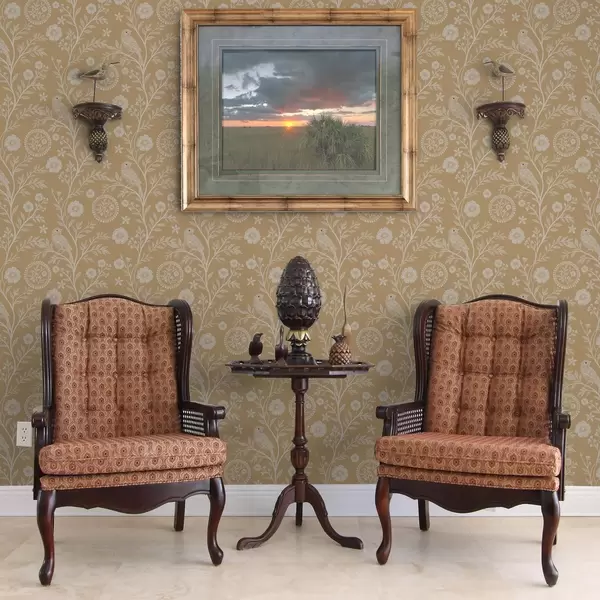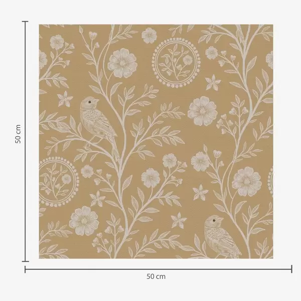 Papel de parede Esboço delicado de um pássaro branco e uma flor pássaro branco e uma flor em um fundo ocre Nr. a00393