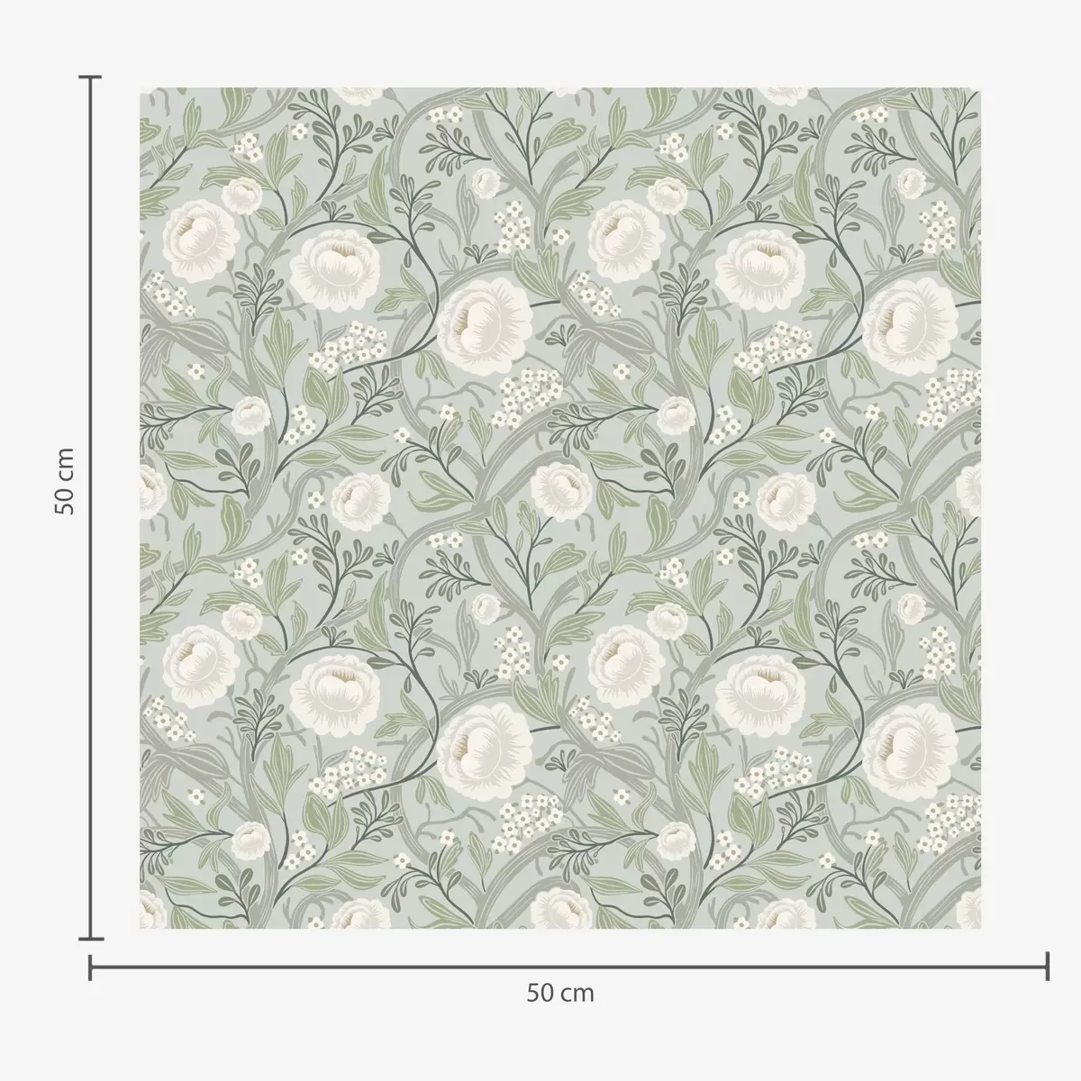 Papel de parede Folhas verdes suaves e flores cremosas com folhas verdes e flores cremosas com vinhas graciosas Nr. a00398