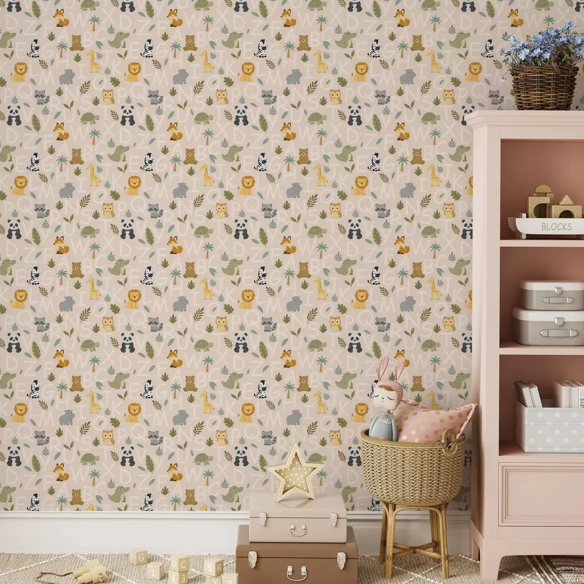 Papel de parede Alfabeto com animais e plantas fofos para crianças Nr. a00400