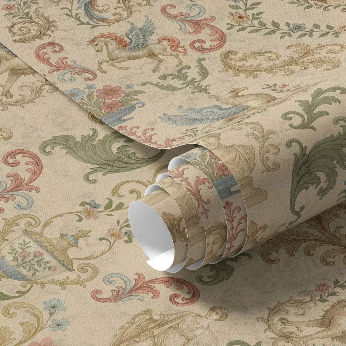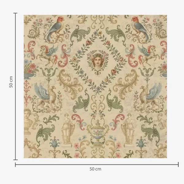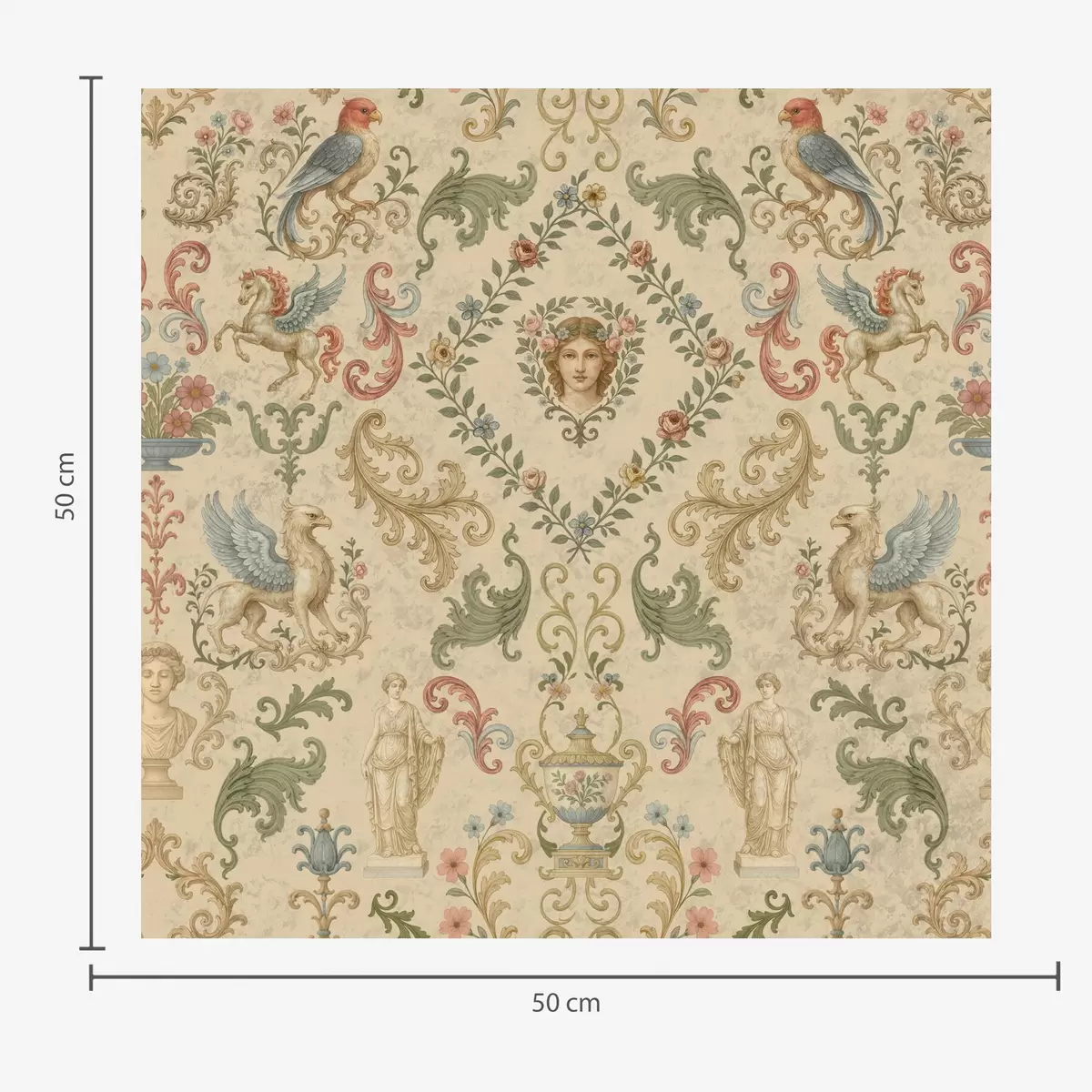 Papel de parede Ornamento vintage com grifos, flores e figuras Nr. a00402