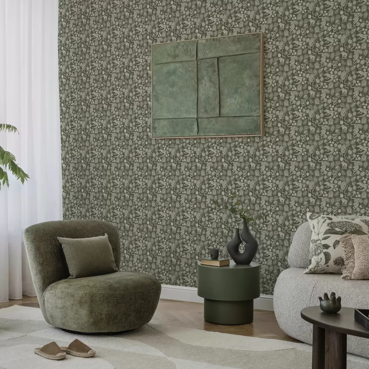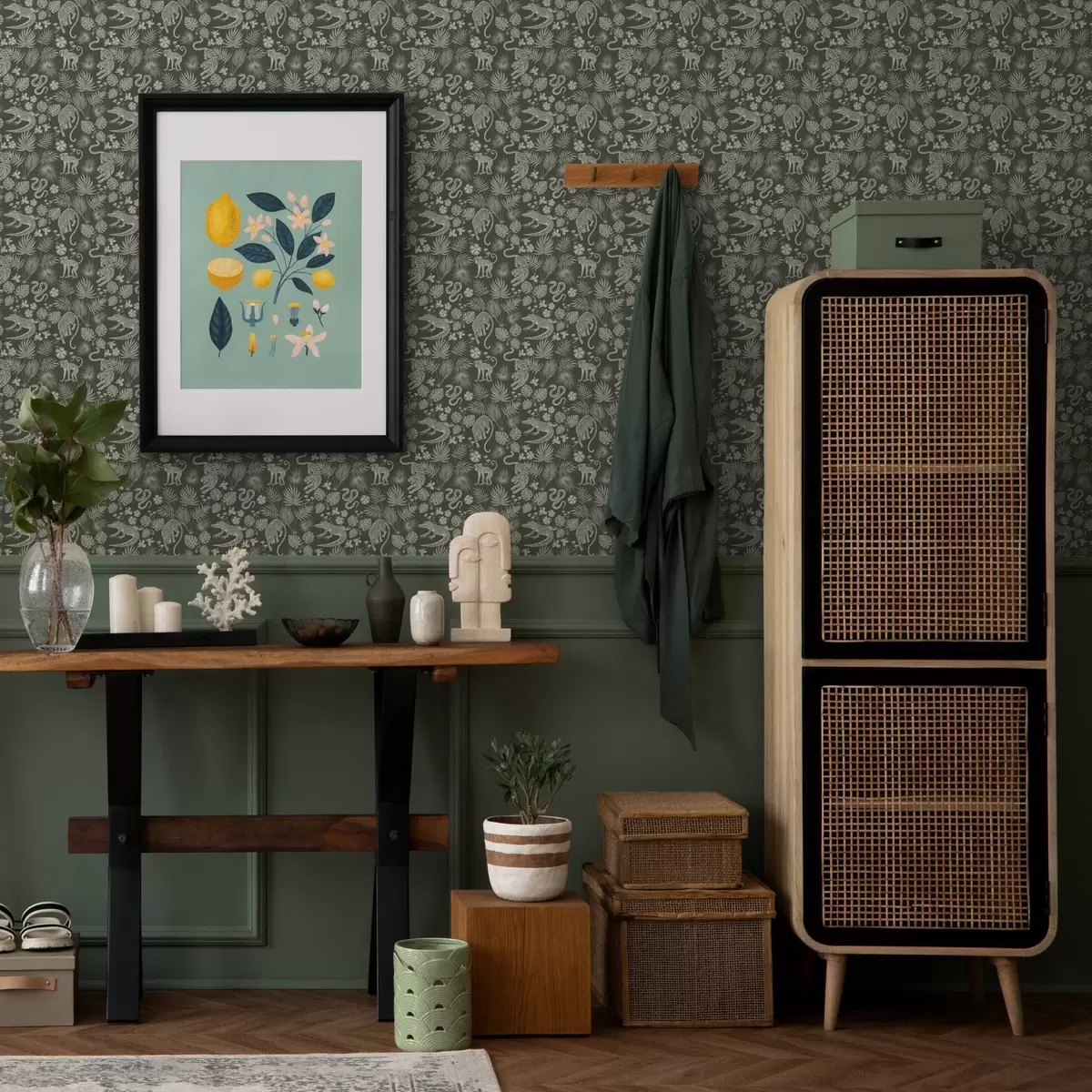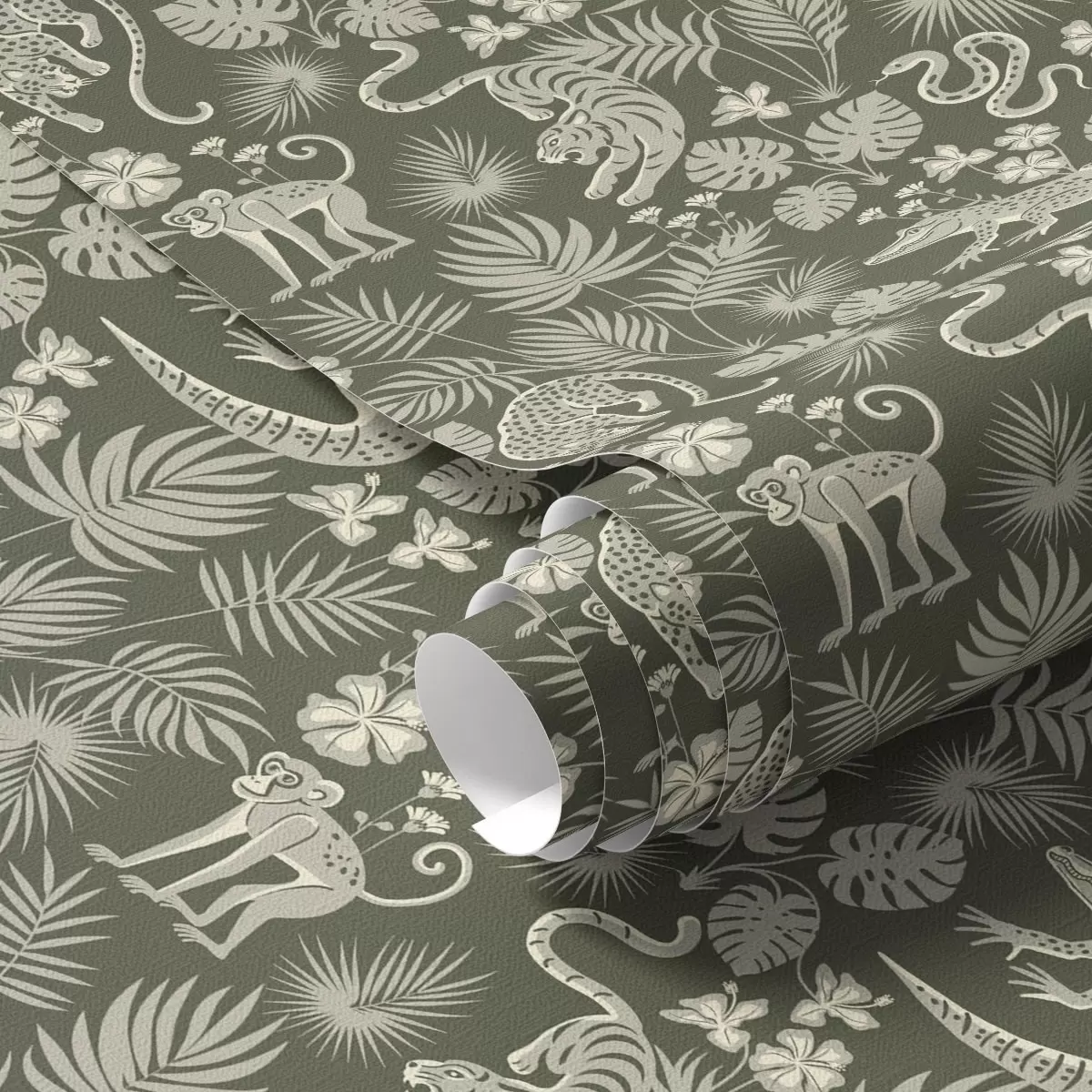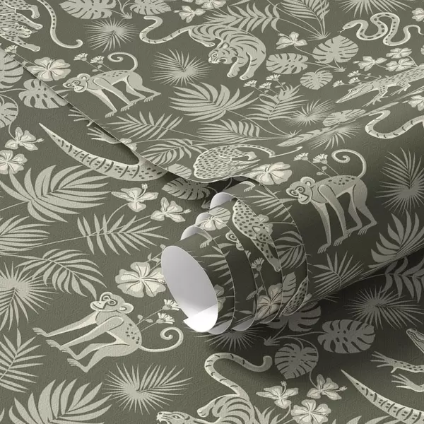 Papel de parede Silhuetas de animais selvagens em meio a folhas tropicais Nr. a00404