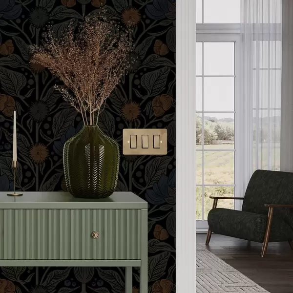 Papel de parede Ornamento floral escuro com detalhes em laranja Nr. a00411