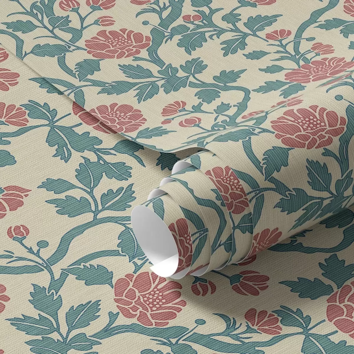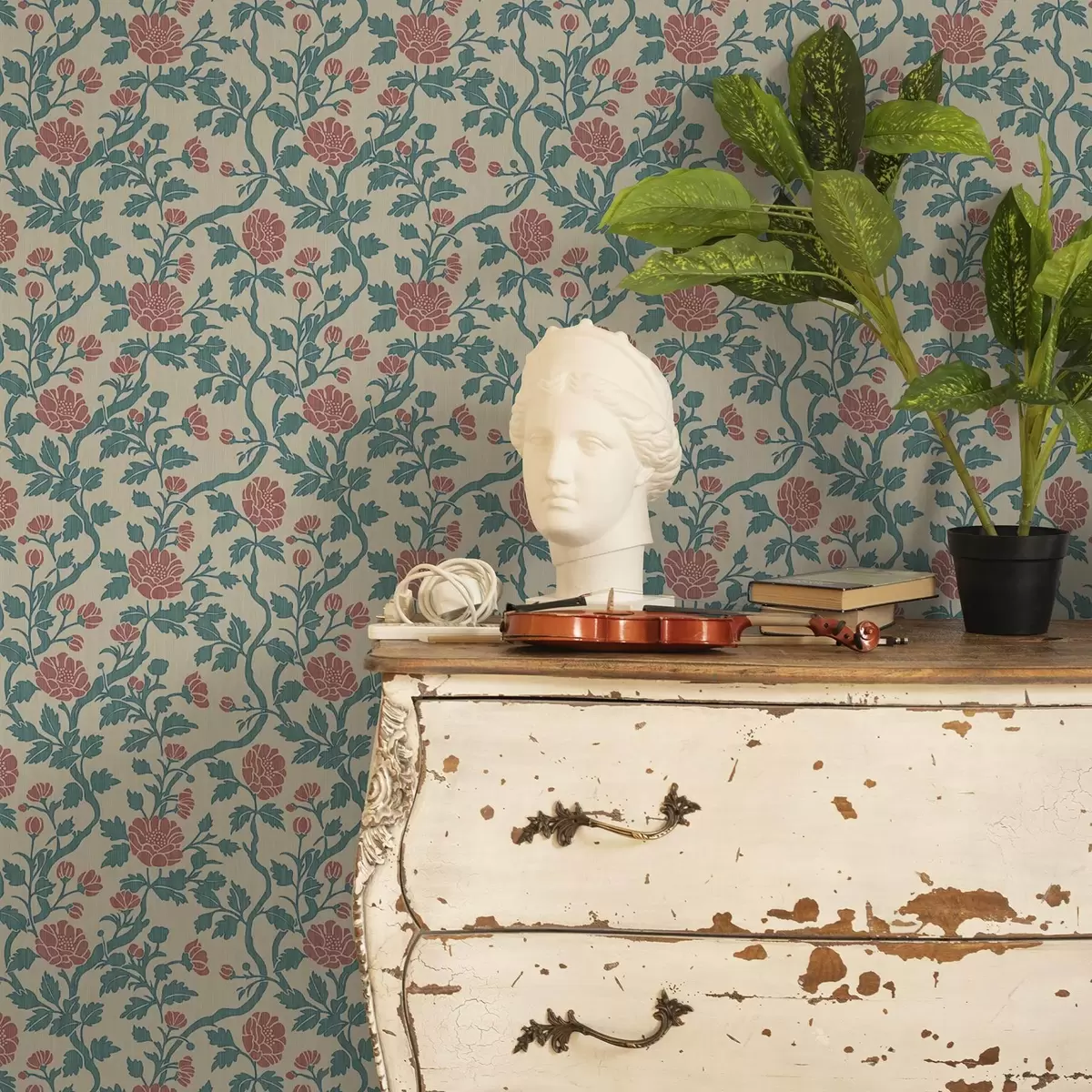 Papel de parede Flores rosa ornamentais em um fundo bege Nr. a00414