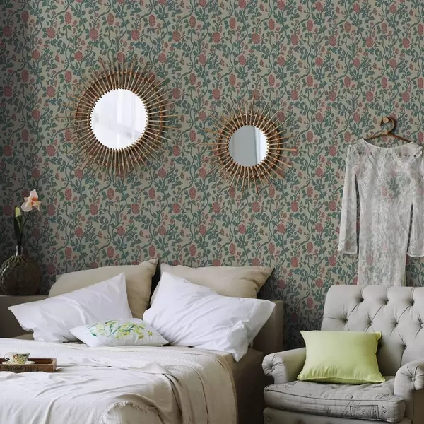 Papel de parede Flores rosa ornamentais em um fundo bege Nr. a00414