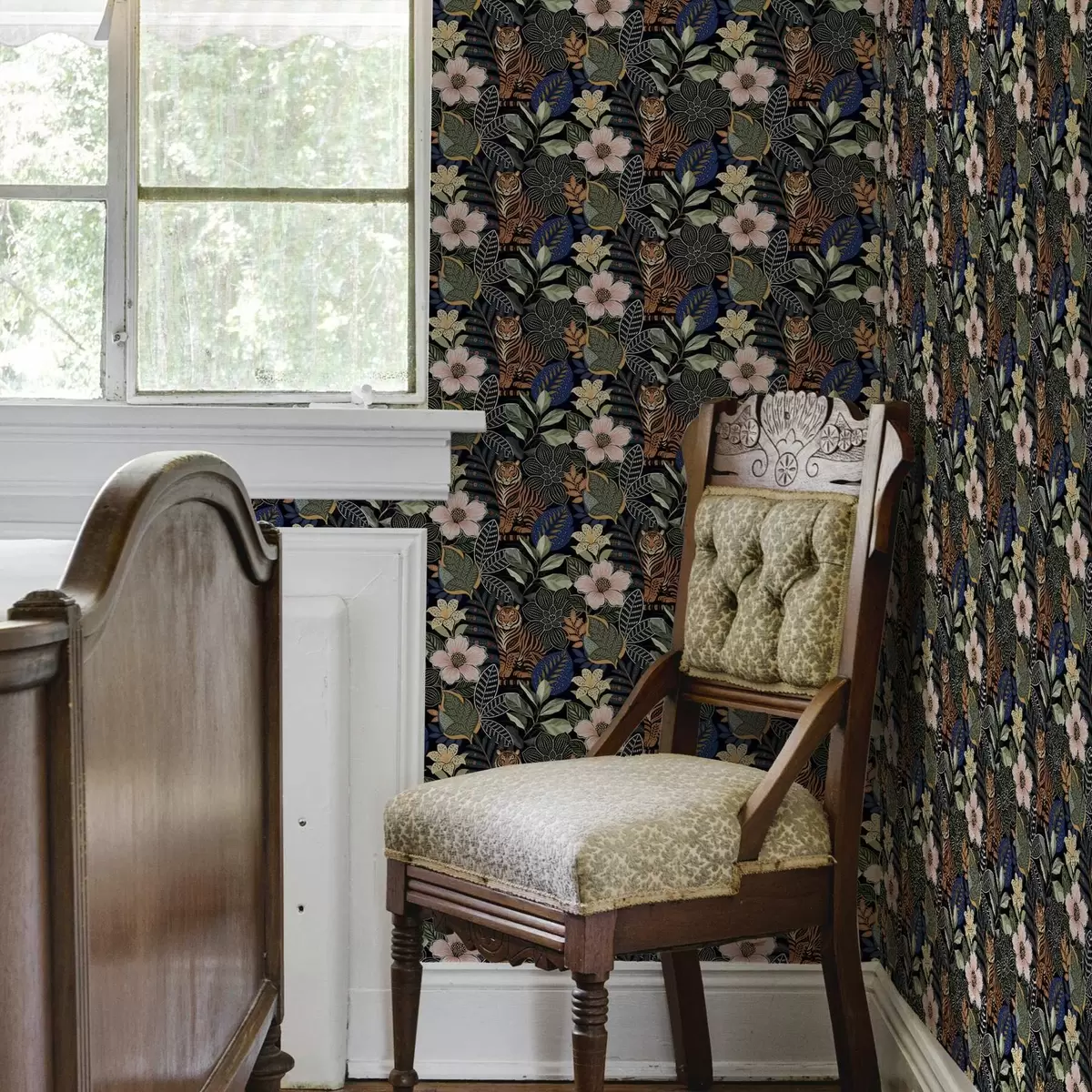 Papel de parede Tigres entre flores e folhas tropicais brilhantes Nr. a00426