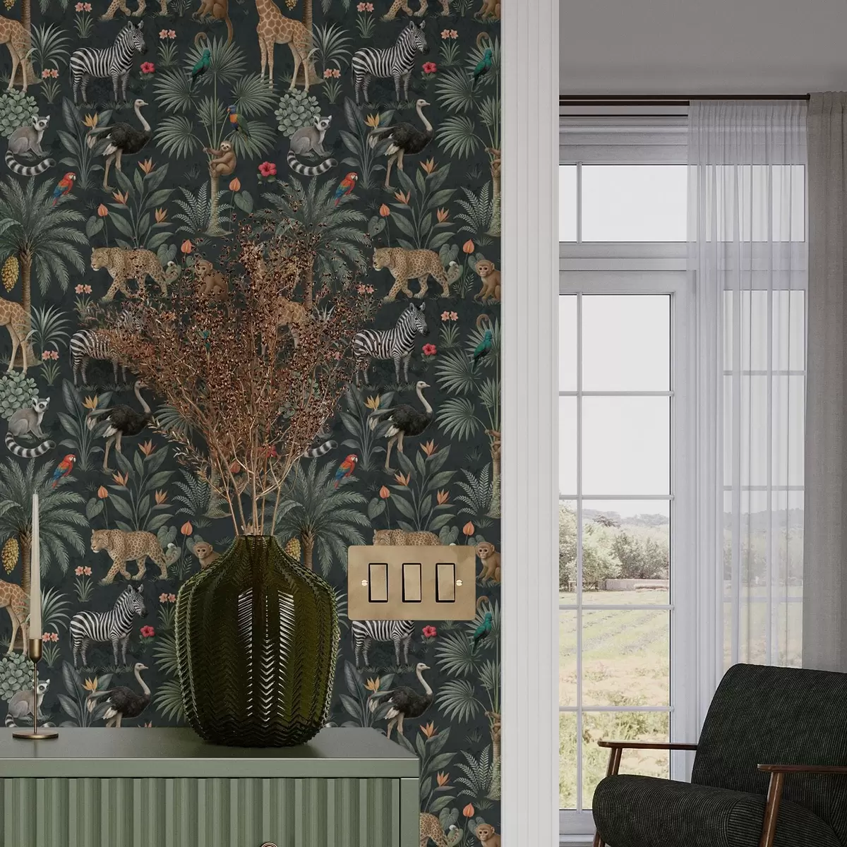 Papel de parede Animais tropicais realistas entre plantas Nr. a00427