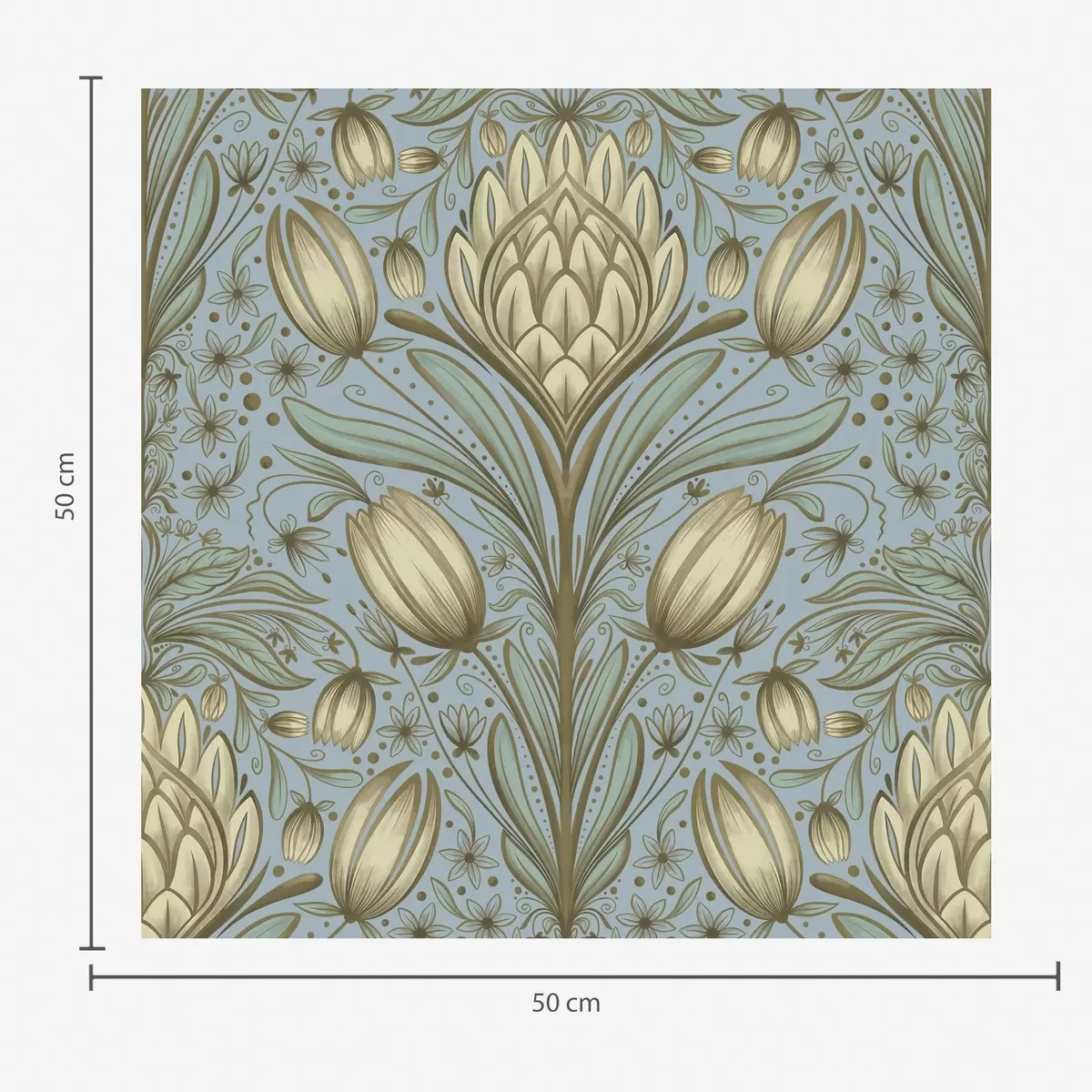 Papel de parede Padrão azul com alcachofras e tulipas Nr. a00435